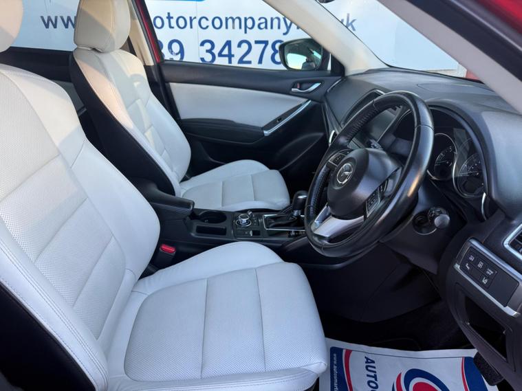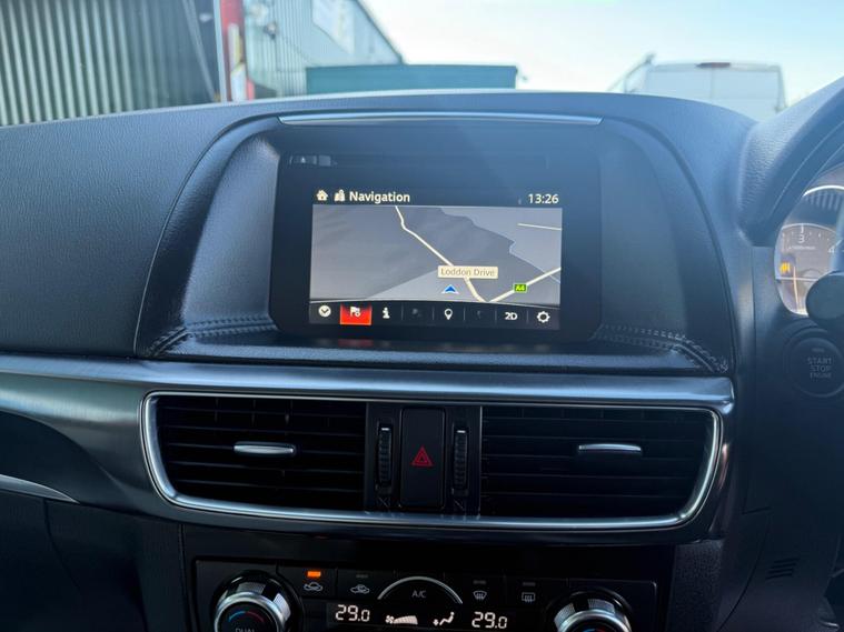 With only one owner and a remarkably low mileage of 30858 miles for its 2015 registration, this Mazda CX-5 SKYACTIV-D Sport Nav presents an exceptional find. This Four Wheel Drive model, powered by a 2.2L Diesel Engine and meeting Euro 6 emissions standards, boasts a full dealership service history and a clear vehicle history check. You can drive away with confidence, as it comes with 12 months MOT and an 18 month warranty. Inside, you'll appreciate the convenience of an integrated Bluetooth system, front and rear parking sensors, and a reversing camera, all complemented by a premium BOSE Centrepoint Surround Sound System and LED headlights for enhanced visibility.This CX-5 stands out with its generous boot space, offering ample room for all your needs, and its low insurance group rating makes it an economical choice. These highlights demonstrate how this particular vehicle offers superior value compared to other similar models on the market..