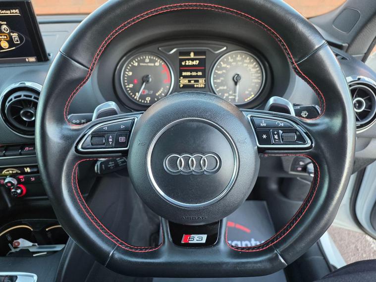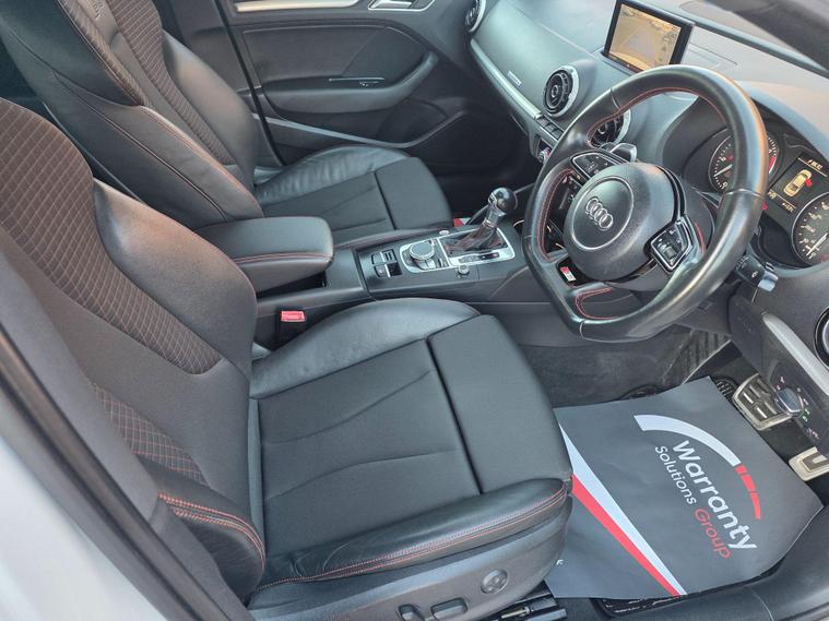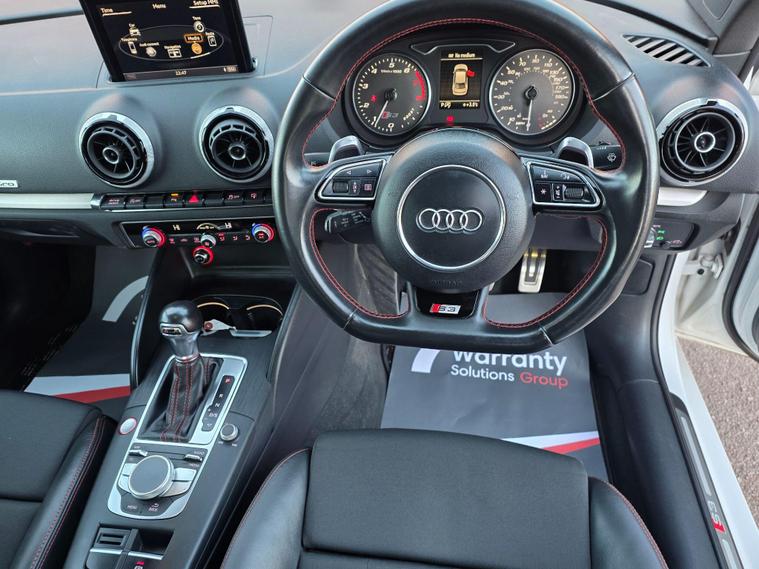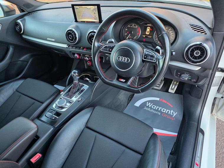 We are proud to present for sale this stunning high specification AUDI S3 Quattro DSG finished In Metalic Glacier white. The Audi S3 is a four-wheel-drive hot hatch, providing high performance along with excellent handling and comfort . This vehicle comes with Adaptive cruise control, Xenon lights, Half leather interior, Front & rear parking aid, Climate control, Reversing camera, SAT NAV, Peddle shift, Led day lights, Bluetooth, LED lights, New service, 18'' alloys, Excellent condition, E/Folding mirrors, Climate, 12 MONTHS PARTS AND LABOUR WARRANTY INCLUDED, ALL MAJOR CREDIT/DEBIT CARDS ARE ACCEPTED, PART EXCHANGE WELCOME, FINANCE AVAILABLE.