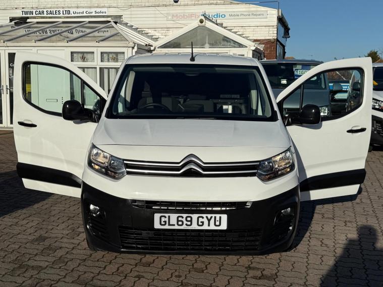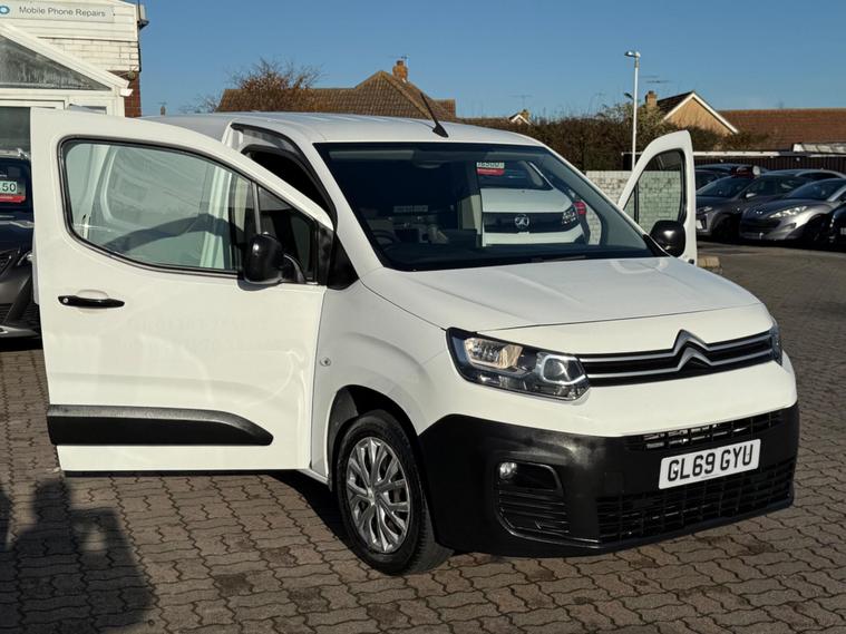 ONE FORMER KEEPER, 6 MONTHS WARRANTY, 12 MONTHS MOT, Experian clear, just serviced, all prev MOT’s avail, we are located at 1-9 WALTON ROAD FRINTON ON SEA ESSEX CO13 0AA, PART EXCHANGE WELCOME, FINANCE AVAILABLE, This 2019 Citroen Berlingo Enterprise M boasts an exceptionally low mileage of just 68, 100 miles, making it a standout choice for its age. This 1.5 BlueHDi 1000 Enterprise M SWB Euro 6 (s/s) 5dr model comes with a Experian clear vehicle history check and benefits from a recent service in November 2025. You'll also receive a 12 month MOT upon purchase and a 6 month warranty for added peace of mind. Inside, you'll find an 8in colour touchscreen with Citroen Connect DAB Radio, Bluetooth handsfree, and USB connectivity, alongside air conditioning and rear parking sensors for convenience. The vehicle also features automatic on halogen headlights for improved visibility.The Citroen Berlingo is designed to be both economical and practical. With a fuel economy of 54 mpg and low CO2 emissions, it offers an efficient driving experience. Its impressive 3900 litre cargo volume makes it an ideal companion for business or family needs, offering more space than many similar vehicles. This combination of low running costs, generous capacity, and a well maintained history makes this Berlingo a compelling option..