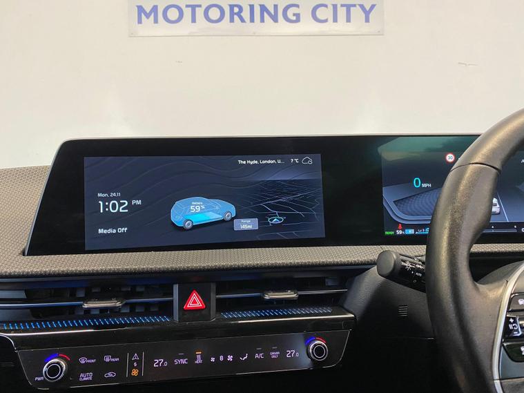 ULEZ COMPLIANT|ELECTRIC| AUTOMATIC |KEYLESS ENTRY | ELECTRIC MIRRORS | LANE ASSIST | CRUISE CONTROL | DRIVE MODE OPTION | VOICE COMMAND | AUTO HEADLIGHTS | AUTO WIPERS | AUTO HOLD BRAKE | HEATED DRIVER & PASSANGER SEATS | HEATED STEERING | AC | NAVIGATION | BLUETOOTH | PHONE PROJECTION | PARKING SENSORS | REVERSE CAMERA | APPLE CAR PLAY | ANDROID AUTO |HPI CLEAR |FREE AA BREAKDOWN COVER WITH ALL PURCHASES|FINANCE & WARRANTY AVAILABLE|DELIVERY AVAILABLE NATIONWIDE | £99 ADMIN FEEThis 2022 Kia EV6 Air is a superb example, having had only one owner since new. This electric vehicle boasts a substantial 77 kWh battery, offering a maximum range of 328 miles when new, making it ideal for both daily commutes and longer journeys. It comes equipped with modern conveniences such as LED headlights, automatic headlight control, and a reversing camera system with dynamic guidelines for easier parking. For added comfort and safety, it features navigation smart cruise control with a speed limiter and heated front seats. The Kia EV6 Air truly stands out with its impressive performance and charging capabilities. Its acceleration is noteworthy, reaching 0-62mph in just 7.3 seconds, demonstrating its responsive electric power. When it comes to charging, you can achieve a full charge at home using a 7kW charger in approximately 12 hours and 30 minutes. For quicker top ups, the fastest public charging time allows you to go from empty to 80% in as little as 20 minutes. Furthermore, this model offers generous boot space, providing ample room for your luggage and shopping needs..