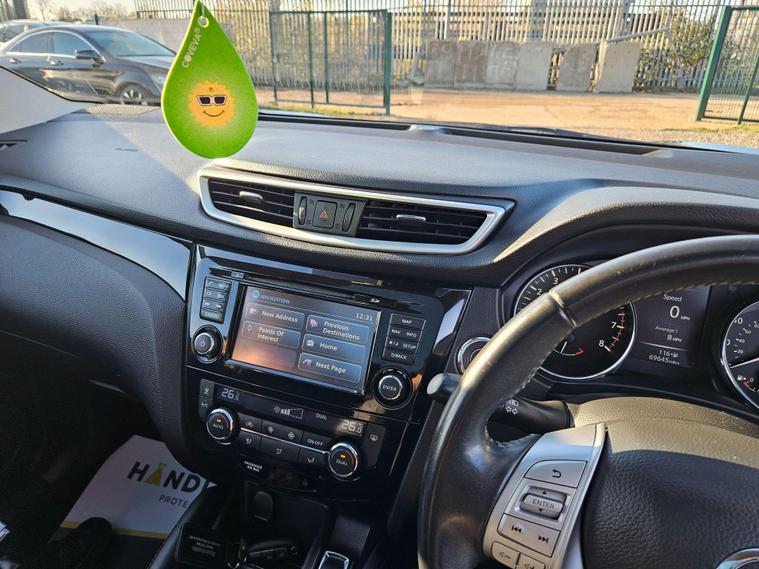 3months warranty, full service history, 2keys, mot till 30/11/2026, hpi clear, ulez compliant, Timing chain done 14/11/2025. Panoramic, reverse camera, parking sensors, Bluetooth handsfree system, sat-nav, cruise control, 3 previous owners and many more. Free 12months basic aa breakdown cover, free 20miles delivery and nationwide delivery available for extra cost. In house finance options available. This 2015 Nissan Qashqai DIG-T n-tec+ is a well maintained example, offering a blend of practicality and modern features. Powered by an efficient 1.2 litre petrol engine, this Euro 6 compliant model is registered in 2015 and presents in the n-tec+ trim. It boasts a desirable Panoramic Glass Roof, complete with a fixed sunroof, and automatic headlights that illuminate the way. Navigating tight spaces is made easier with the Around View Monitor, providing a 360 bird's eye view, complemented by front parking sensors for added peace of mind. Stay connected on the go with seamless Bluetooth integration for your telephone.This Nissan Qashqai DIG-T n-tec+ stands out with its impressive fuel economy, achieving up to 49 miles per gallon, which is better than many other vehicles in its class. Furthermore, its low CO2 emissions and placement in a low insurance group highlight its cost effectiveness for everyday driving. These factors combine to make this Qashqai a sensible and appealing choice for those seeking an economical and well equipped family car..