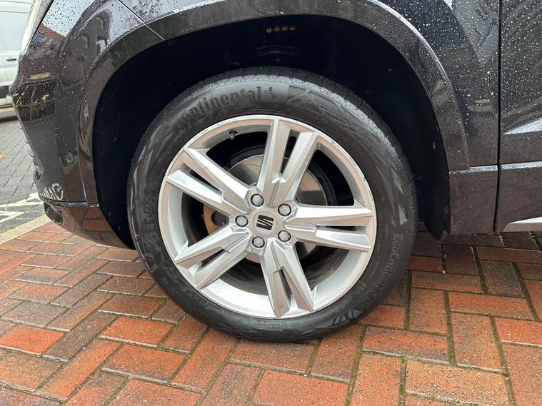 This 2024 SEAT Ateca TSI EVO FR is a superb example, boasting a full service history and a clear vehicle history check, ensuring complete peace of mind for its next owner. This stylish SUV, registered in 2024, features a responsive 1.5 litre Euro 6 compliant petrol engine and has had only one owner from new. The FR trim level offers a sporty aesthetic and comes equipped with impressive technology, including LED headlamps with cornering function, dual zone climate control for personalised comfort, and a wireless phone charger. Navigating tight spaces is made effortless with the Park Assist system, complete with front and rear parking sensors, while the wireless Full Link system seamlessly integrates your smartphone via Android Auto or Apple CarPlay.The SEAT Ateca TSI EVO FR excels with its dynamic performance, achieving 0-62mph in just 9.0 seconds, demonstrating its agile acceleration which sets it apart from many in its class. This vehicle also offers generous boot space, making it incredibly practical for everyday use and longer journeys. Furthermore, the inclusion of a 36 month warranty provides added confidence in your purchase, underscoring the quality and reliability of this well maintained Ateca..