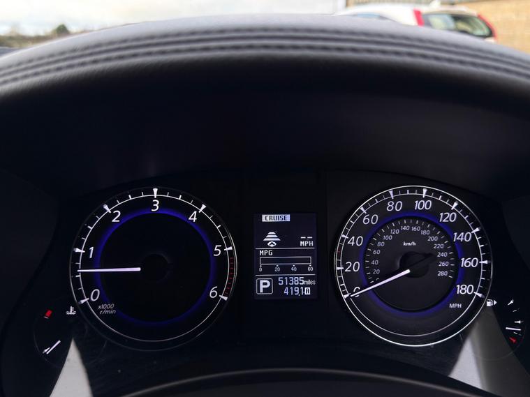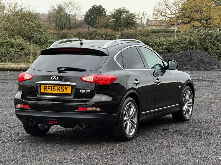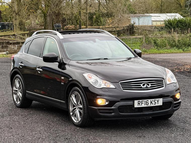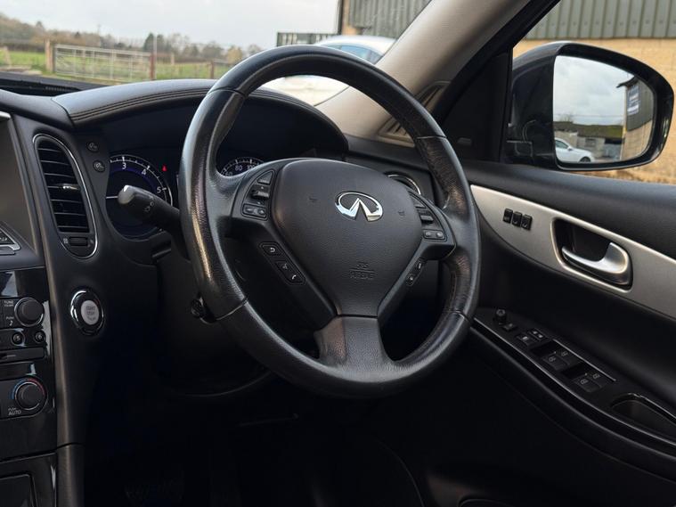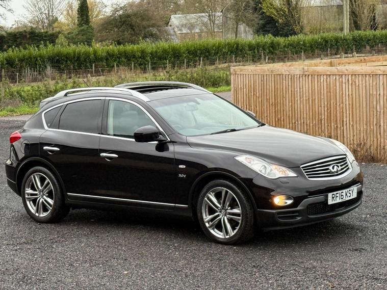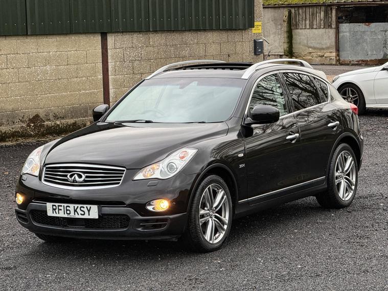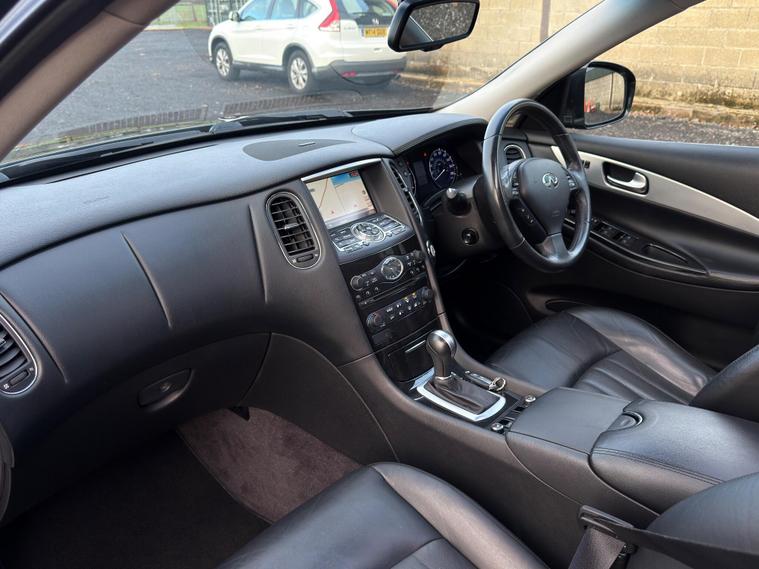 Boasting exceptionally low mileage for its age, this 2016 Infiniti QX50 d V6 GT presents a compelling proposition. This Four Wheel Drive model, powered by a robust 3.0L Diesel Engine, comes with a clear vehicle history check and a full service history, ensuring peace of mind. The MOT is valid until October 2026, and it includes a 6 month warranty for added security. Notable features enhance its appeal, including polished aluminium roof rails, an electric glass sunroof, and heated driver seats for comfort in all conditions. The I Key system offers smart access and smart ignition, complemented by dual zone adaptive climate control with auto recirculation.Experience impressive performance with this QX50, capable of accelerating from 0 to 62mph in just 7.9 seconds, a testament to its powerful V6 engine. This swift acceleration, combined with its comprehensive service history and long MOT, demonstrates its superior condition compared to other vehicles of its kind. The inclusion of features like the electric sunroof and dual zone climate control further elevate the driving experience, making this Infiniti QX50 a well appointed and capable choice.Also comes with:Electric Glass Sunroof360' camerasBlind spot monitoring systemManufacturer-fitted towbarAdaptive Cruise Control.