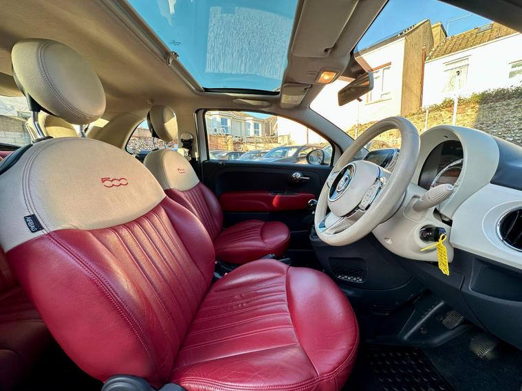 |||| THE USED CAR: |||| Pavillion Car Sales is pleased to offer an excellent example of a Fiat 500 in the Lounge Trim!This sleek is well equipped with lots of great features including Bluetooth, Navigation, Reverse Parking Sensors, Panoramic Roof, DAB Radio, Touchscreen Interface, Red Leather Seats, A/C, USB Connection, 15-Inch Alloys, Central Locking, Cup Holders, and more. The 1.2 Petrol engine delivers an impressive 60.1 MPG, boasting 68 horsepower. With as little as £20 annual road tax and ULEZ (EURO 6) compliance, this practical and economical choice invites you for a test drive. |||| THE HISTORY: |||| Well Maintained Having only 1 FORMER KEEPER, this used car has been well maintained inside and out. A thorough mechanical inspection has been carried out and it will be given a new service at the current miles.|||| WHAT'S INCLUDED: |||| Benefits & Peace of MindExperience peace of mind with a Brand new 12 Months MOT, 12 months complimentary AA breakdown cover, and a 3-month warranty extendable to a nationwide 36 months with the AA. 5-day Drive away cover is available, and we can assist with road tax. 2 KEYS.|||| ABOUT US: |||| The Family Run & Award-Winning Used Car DealershipWelcome to Pavillion Car Sales – a multi-award-winning, family-run car dealership with over a decade of expertise we have used cars for sale in Brighton & Crawley. As an AA-authorized & Trading Standards-approved used car dealership, we're committed to offering high-quality second-hand vehicles for sale at competitive prices. Each car undergoes a meticulous selection process to meet our high standards, finding you a perfect balance between quality, reliability, and value. Beyond our extensive selection of used cars for sale, our services ensure a seamless and stress-free experience, including a thorough multi-point inspection, history checks, a pressure-free family-like environment, and professional valeting.PAVILION CAR SALES - Brighton.