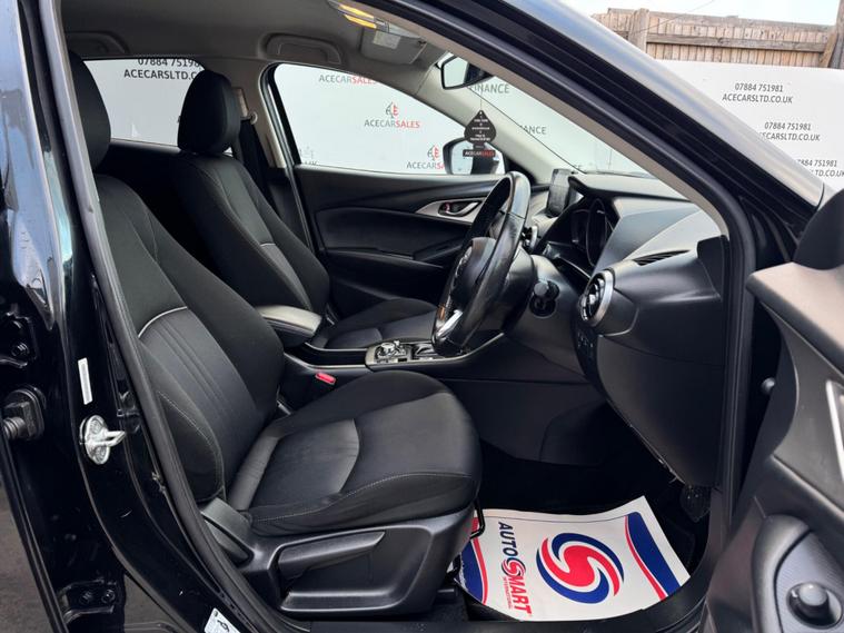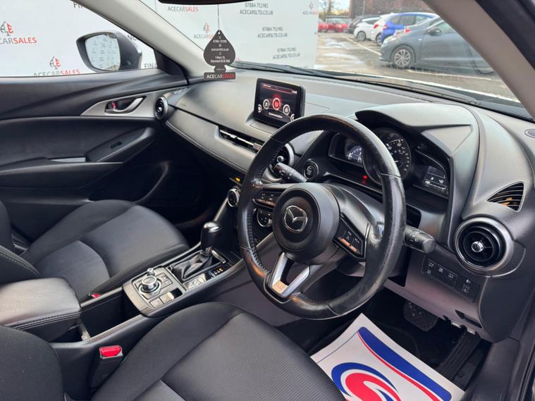 FINANCE & PCP AVAILABLE, COMPLEMENTARY WARRANTY INCLUDED, GOOD CONDITION, WE TAKE PART EXCHANGE! Mazda CX-3 2.0 SKYACTIV-G SE-L Nav+ Auto Euro 6 (s/s) 5dr. HPI Clear, Full Service History, 12 Months MOT Included With No Advisories, 1 Owner, 2 Keys, EURO6 ULEZ Compliant, Insurance Group 15, Keyless Start, Cruise Control, Speed Limting Function, Start/Stop Function, Parking Sensors - Rear, Advanced Smart City Brake Support, Lane Departure Warning System, Power Assisted Steering - Electronic, Sport Mode, Manual Shifting Function, Electric Parking Brake With Auto Hold Function, Traction Control, Dynamic Stability Control, Anti Lock Braking System, Emergency Brake Assist, Tyre Pressure Monitoring System, Headlights - Automatic, Headlights - Halogen, Halogen Daytime Running Lights, Front Fog Lights - LED, Rain-Sensing Front Wipers, Electric Mirrors, Powerfolding Mirrors, Electric Windows, Front Heated Seats, Automatic Dual Zone Climate Control, Air Conditioning, Front And Rear Screens Demister, 7inch Colour Touch Screen Display, Navigation, Traffic Updates, Bluetooth, Radio, DAB, USB, AUX, Telephone Connection, Voice Control, Black Cloth Design Seats, Carbon Fibre Design Interior Trims, Privacy Glass, Exterior Badging, 16inch Alloy Wheels.ALL VEHICLES ARE FULLY INSPECTED PRIOR TO SALE. The bodywork is in excellent condition and the car drives superbly. We welcome you to view and test drive our showroom condition vehicles. Wish to make this purchase hassle free with ease? Feel free to enquire about our competitive Financial packages. We can assist you in securing finance for your New car with ease- regardless of your credit status/history. All of our cars are regularly price checked to be amongst the most competitive on the market! We include a COMPLEMENTARY WARRANTY on all our vehicles. Ace Car Sales Heywood is a well established Family run business with 30+ years of experience in the Motor trade industry! We pride ourselves on offering a personalised service to suit your needs. Visit our website for more information on our vehicles - dealer's website