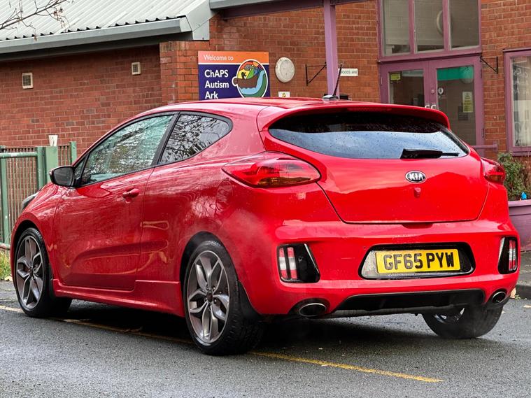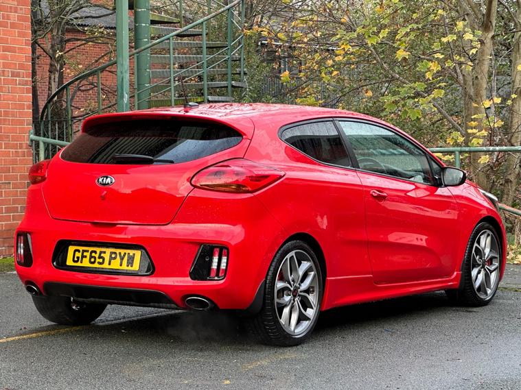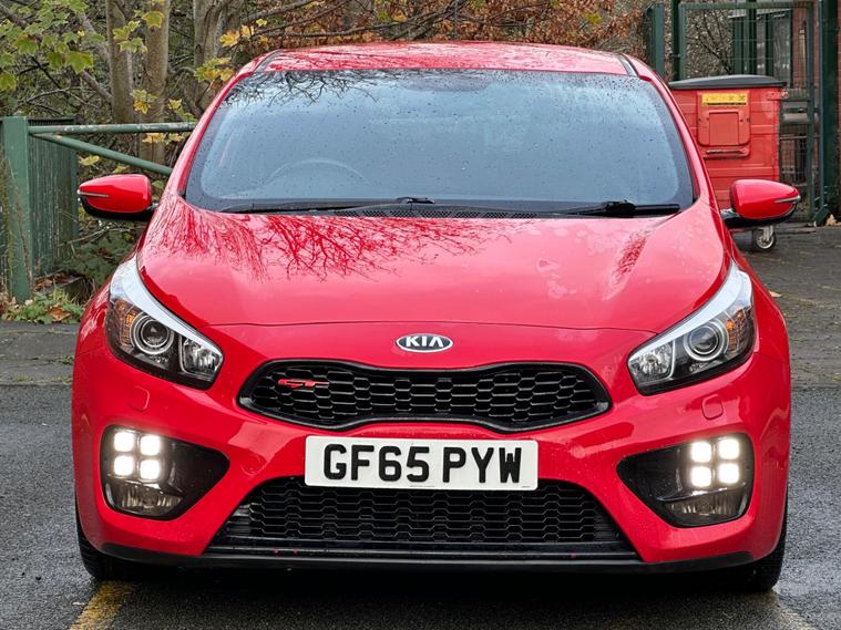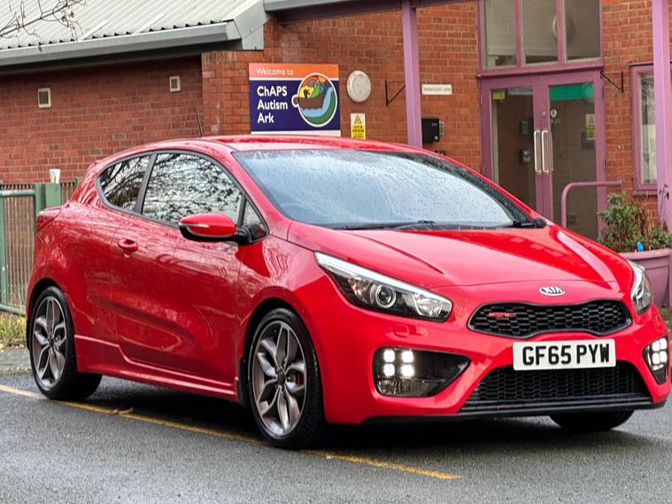 FSH 12 MONTHS WARRANTY WISE PLATINUM WARRANTY INCLUDED. This 2015 Kia ProCeed T GDi GT boasts exceptionally low mileage for its age, having covered just 63, 456 miles. This stylish five door hatchback is presented in GT trim and features a responsive 1.6 litre petrol engine, meeting Euro 6 emissions standards. It comes with a 12 month warranty for your peace of mind, and its MOT is valid until November 2026, ensuring roadworthiness.The ProCeed GT offers a compelling driving experience, highlighted by its brisk 0-60mph acceleration in just 7.3 seconds, demonstrating its performance advantage over many similar vehicles. Practicality is also a strong suit, with a generously sized boot perfect for luggage or shopping. Enhancing convenience and safety are a suite of notable features, including rear parking sensors and a reversing camera system to aid manoeuvring, Xenon headlights with auto levelling for superior night vision, a smart keyless entry system for effortless access, and a heated steering wheel for added comfort during colder journeys..