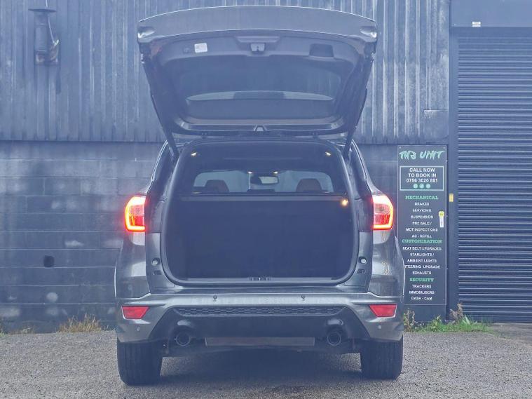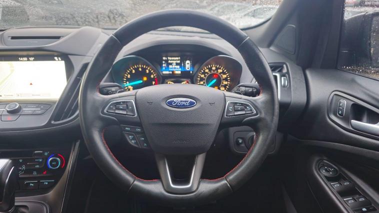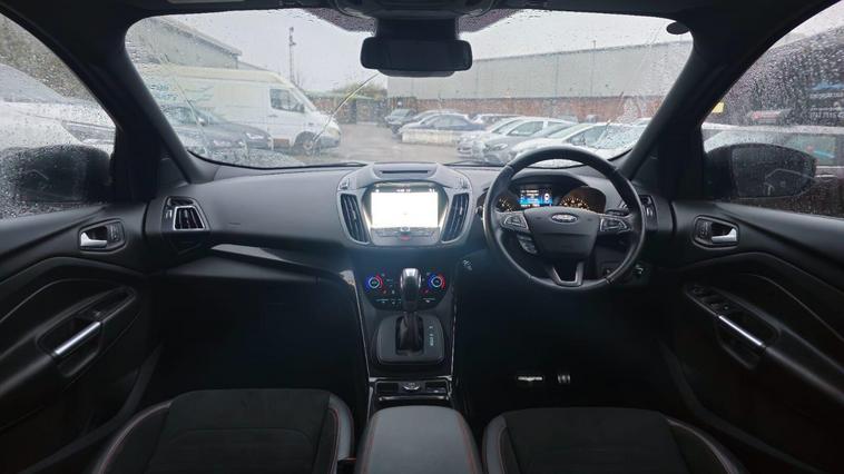 This 2017 Ford Kuga T ST Line X offers a compelling blend of style and practicality, featuring a robust 1.5 litre petrol engine and Four Wheel Drive for confident handling in various conditions. As a Euro 6 compliant vehicle, it meets modern emissions standards. Inside, you'll find comfort and convenience with heated driver and passenger seats, and dual zone electronic automatic temperature control for personalised cabin comfort. Navigating and staying connected is effortless thanks to the Ford DAB Navigation System with Ford SYNC3, which includes Bluetooth connectivity. Parking is made simpler with rear parking sensors and the added convenience of keyless opening with a hands free power tailgate.The ST Line X trim level signifies a sportier aesthetic and enhanced features, setting this Kuga apart. The inclusion of rear parking assistance and a hands free power tailgate demonstrates a thoughtful approach to everyday usability, making manoeuvres and loading easier. The advanced Ford SYNC3 system with navigation and Bluetooth ensures you can stay informed and entertained on every journey, while the climate control system provides a consistently pleasant environment for all occupants. This Ford Kuga is designed to offer a superior driving experience through its well appointed features and capable performance..