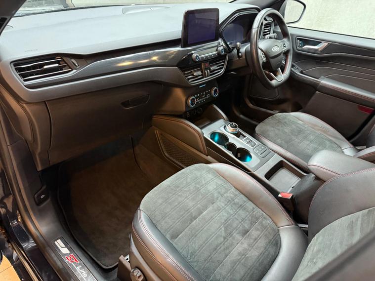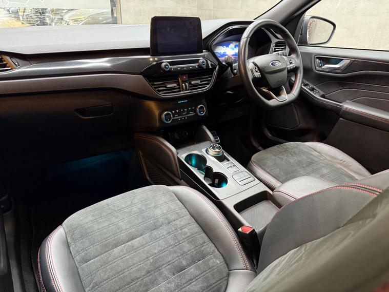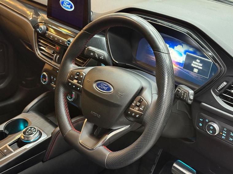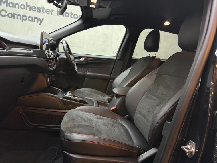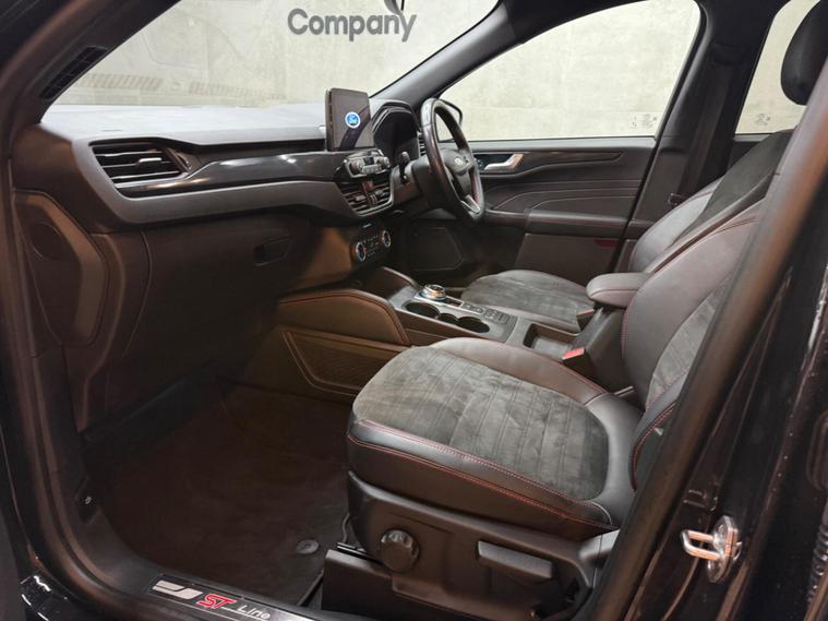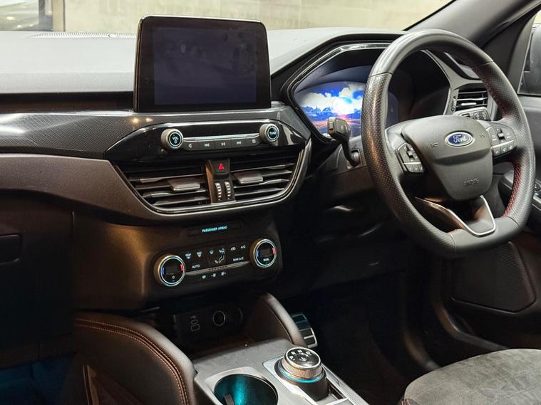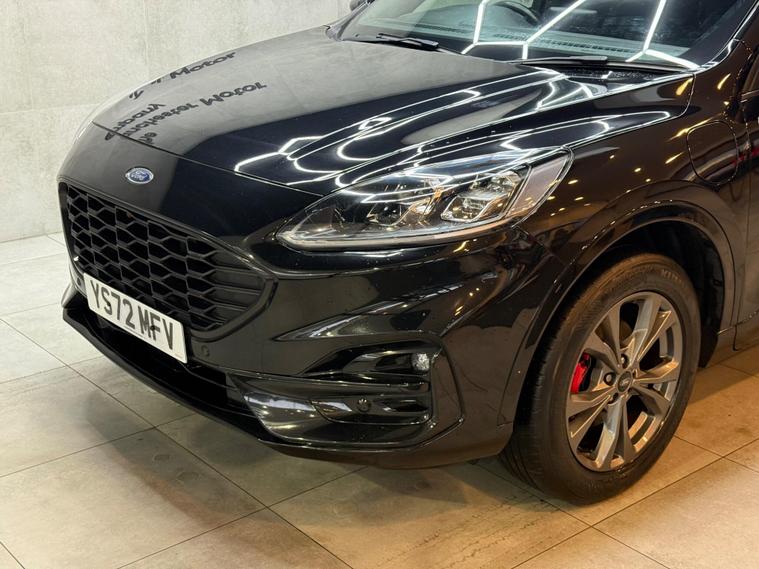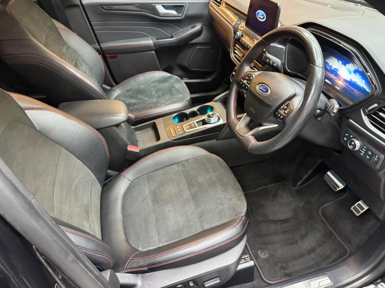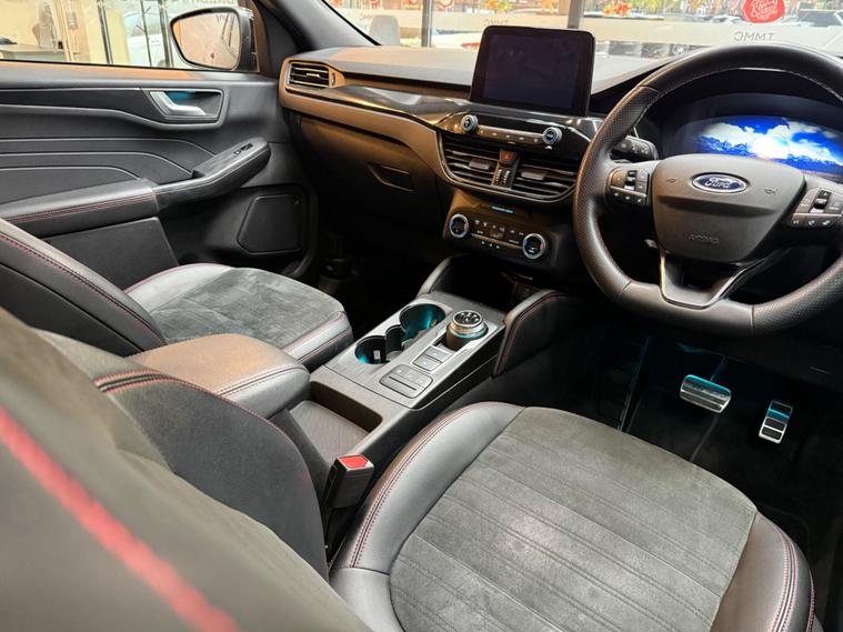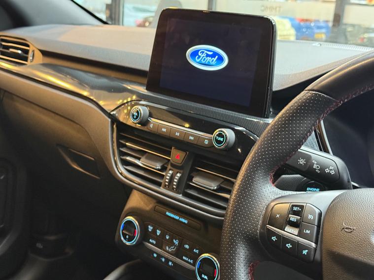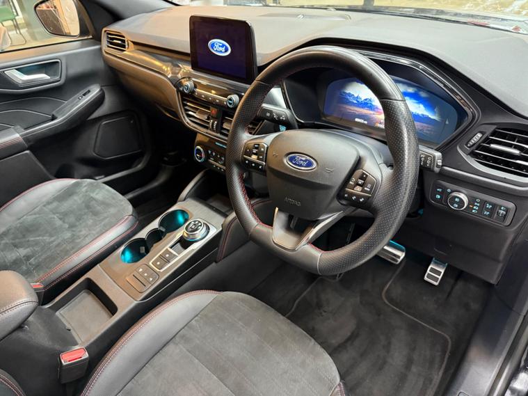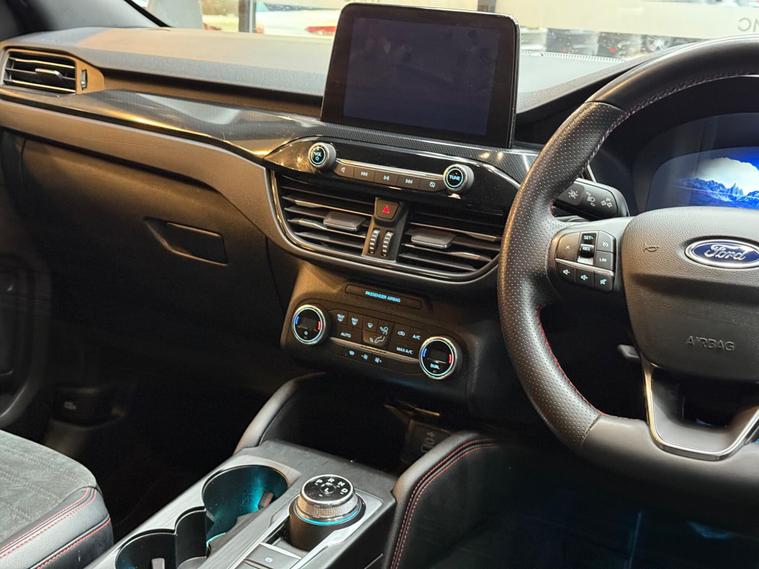 This 2022 Ford Kuga ST-Line offers an efficient and engaging driving experience with its 2.5L Petrol Plug-in Hybrid engine, meeting the Euro 6 emission class. This particular model benefits from a sophisticated ST-Line trim, enhancing its appeal. Inside, you'll find the convenience of the Ford Key Free System for keyless entry and start, alongside DEATC dual-zone climate control to ensure comfort for all occupants.Navigating and staying connected is effortless thanks to the Ford SYNC3 Navigation System, which seamlessly integrates with Android Auto and Apple CarPlay, and offers Bluetooth connectivity. For an immersive audio experience, the Bang and Olufsen premium sound system delivers exceptional sound quality. Furthermore, parking is made simpler with front and rear parking sensors, complemented by parking assistance features. These highlights demonstrate the Kuga's advanced technology and driver focused design, setting it apart in its class..