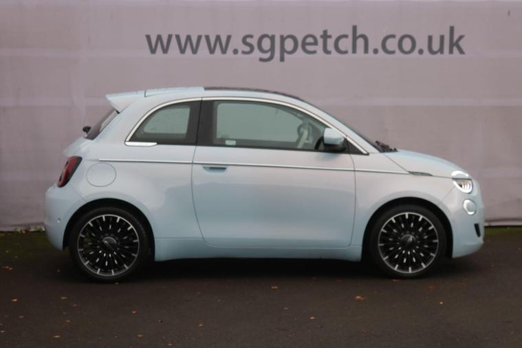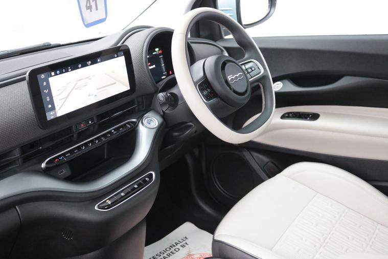 This 2022 Fiat 500e La Prima boasts a full service history, with its last service completed on 21st November 2025 at 29, 301 miles. This electric model features a 42 kWh battery offering a maximum range of 193 miles when new. It comes equipped with LED headlights, a rear view camera for parking assistance, and rear parking sensors. For connectivity and convenience, it includes a smartphone cradle with Bluetooth and an Easy Wallbox for home charging. The Fiat 500e La Prima offers an impressive full charging time of just 6 hours at home using a 7kW charger, and can achieve an 80% charge in a rapid 35 minutes at a public charging station. These charging capabilities, combined with its comprehensive service history and desirable La Prima trim, position this electric Fiat 500e as a well maintained and practical choice for your next vehicle..