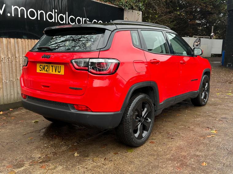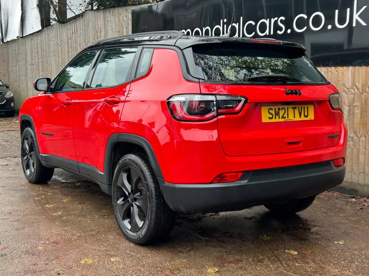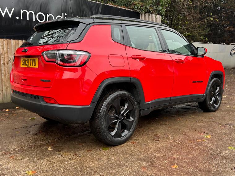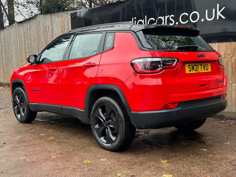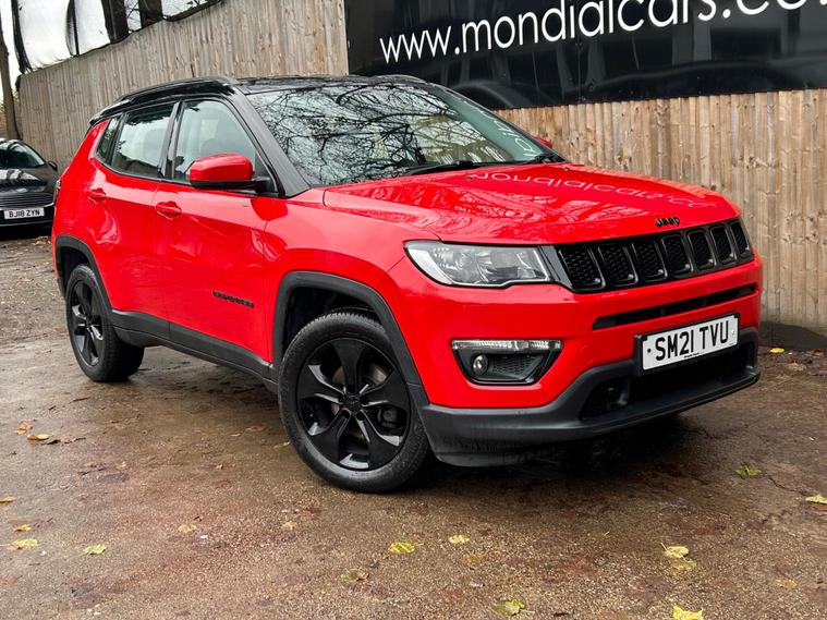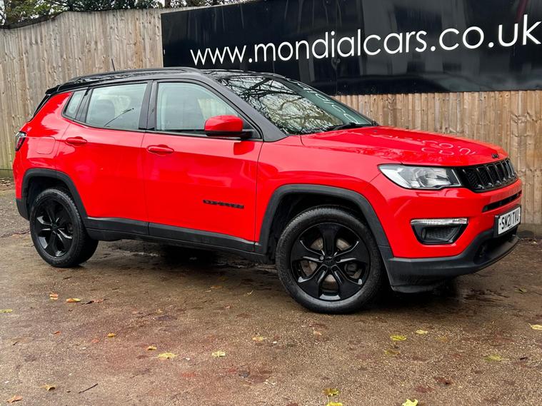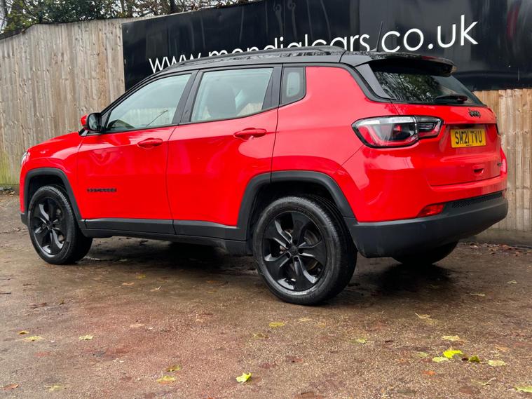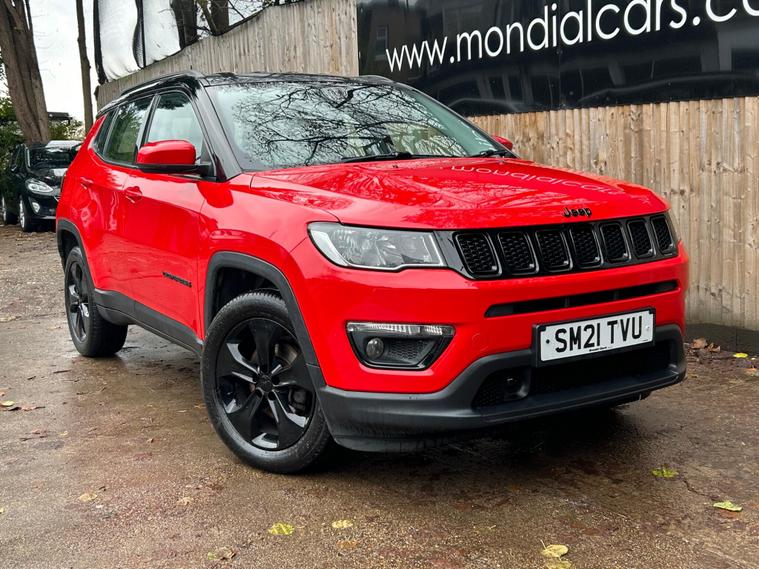 HALF LEATHER INTERIOR==SATELLITE NAVIGATION==APPLE CAR PLAY==REAR CAMERA==HEATED FRONT SEATS AND STEERING WHEEL==ELECTRIC FOLDING MIRRORS==LANE ASSIST==REAR PARKING SENSORS. This 2021 Jeep Compass T Night Eagle offers a compelling blend of style and practicality, making it an excellent choice for those seeking a capable and well equipped SUV. Powered by a 1.4L Petrol engine and meeting Euro 6 emissions standards, this model is designed for efficient performance. Inside, you'll find the Uconnect 8.4 inch DAB radio complete with a touchscreen, USB and AUX ports, satellite navigation, and Bluetooth connectivity for seamless entertainment and communication. The Winter Pack ensures comfort during colder months with heated seats and a heated steering wheel, while Keyless Enter N Go allows for effortless access.Further enhancing the driving experience, the ParkSense Front and Rear Park Assist System provides peace of mind when manoeuvring, and rear passengers will appreciate the independent air conditioning and heater vents. This particular Jeep Compass also benefits from a low insurance group, indicating that running costs could be more affordable compared to similar vehicles. Its robust feature set and thoughtful design make it a standout option in its class..