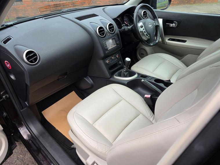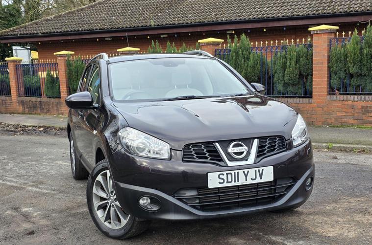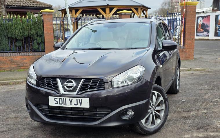SERVICED 11/2025*MOT NOV 2026. EXSISTING LADY OWNER ON THIS CAR SINCE APRIL 2017, PANO ROOF WITH ELECTRIC BLIND, NAVIGATION, BLUETOOTH TELEPHONE, REVERSE CAMERA, FULL LEATHER, HEATED SEATS, This 2011 Nissan Qashqai dCi Tekna offers an exceptional combination of low mileage and impressive fuel economy, having covered just 94, 383 miles. As a Tekna trim model, it comes equipped with a 1.5L Diesel Engine and a suite of advanced features designed for convenience and comfort. These include Xenon Clear Lens Headlights for superior visibility, Rear Parking Sensors and a Reversing Camera to aid manoeuvring, and an Automatic Lighting System that adjusts to ambient conditions. Inside, you can enjoy the premium sound experience provided by the BOSE Audio System.The Nissan Qashqai dCi Tekna stands out with its excellent fuel economy, achieving a highlight of 54 mpg, which indicates it is more efficient than many similar vehicles. Furthermore, its low insurance group and low CO2 emissions suggest that running costs will be kept to a minimum, making it a sensible choice for everyday driving..