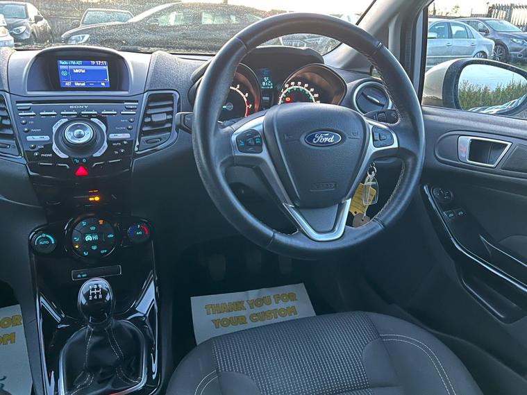This 2015 Ford Fiesta Titanium is a superb example, having been owned by just one person since new. This popular hatchback is equipped with a responsive 1.0L petrol engine and meets the Euro 6 emission standards. You'll appreciate the convenience of automatic headlights that switch on when needed, and the Electronic Automatic Temperature Control system ensures a comfortable cabin temperature. Stay connected on the go with the integrated Bluetooth hands free phone system.With an impressive fuel economy of up to 66 miles per gallon, this Fiesta Titanium offers excellent running costs. Its low CO2 emissions also highlight its efficiency compared to many other vehicles. This combination of economical performance, desirable features, and excellent provenance makes this Ford Fiesta a smart choice for any driver..