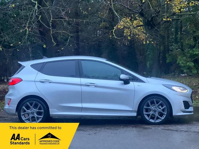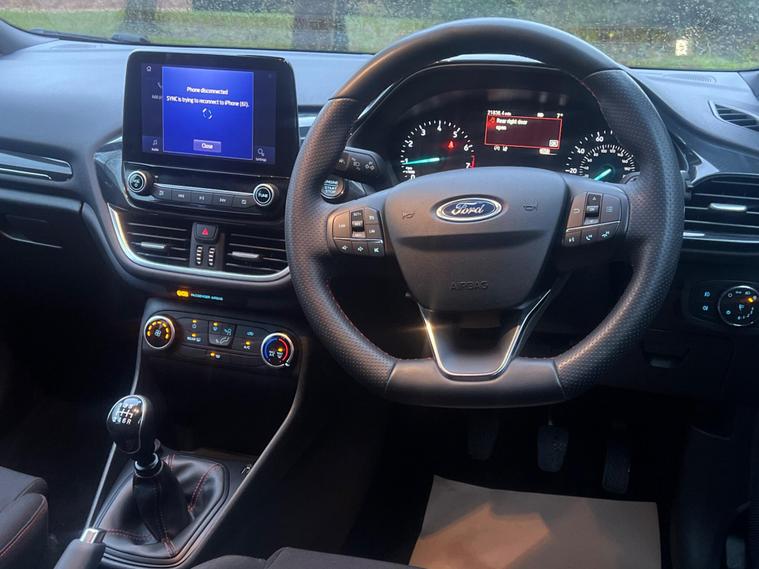 This 2022 Ford Fiesta ST Line Edition offers exceptional value with its remarkably low mileage of just 20, 651 miles. This Euro 6 compliant 1.0L petrol model boasts a clear vehicle history check, providing peace of mind for its next owner. Inside, you'll find the convenient Ford Navigation System with Ford SYNC 3, offering seamless integration with Apple CarPlay and Android Auto, further enhanced by FordPass Connect with its embedded modem. Safety and visibility are prioritised with the NCAP Pack, including automatic headlights, and LED projector headlights with distinctive daytime running lights. Maneuvering is made easier thanks to the rear parking distance sensors.Experience impressive efficiency with a fuel economy of 58 mpg, alongside low CO2 emissions, making this Fiesta an economical choice. Its performance is equally engaging, achieving 0-62mph in just 9.4 seconds. These highlights demonstrate how this particular Ford Fiesta ST Line Edition stands out from other vehicles in its class, offering a compelling blend of technology, safety, and driving enjoyment..