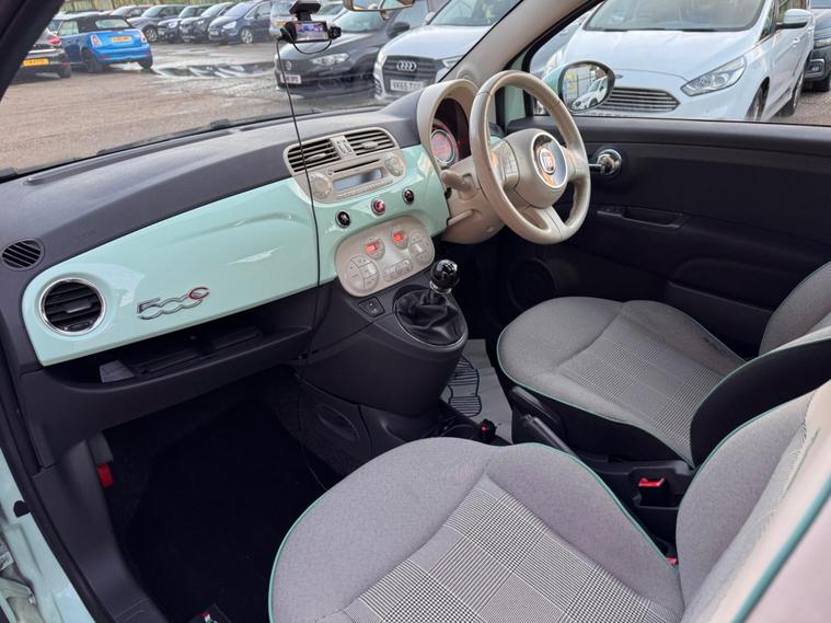 This 2015 Fiat 500C Lounge is presented with a clear vehicle history check, offering peace of mind for its next owner. This stylish convertible features a 1.2L petrol engine and meets the Euro 6 emission class. Inside, you'll find a comfortable cabin equipped with 15 inch diamond finish alloy wheels, Blue&Me hands free system with USB and Bluetooth connectivity, and air conditioning to keep you comfortable. For added convenience, it includes rear parking sensors and a unique seats passengers memory function.The Fiat 500C Lounge is designed to be economical and affordable to run. It boasts an impressive fuel economy of up to 60 miles per gallon, which is excellent for its class. Furthermore, this model falls into a low insurance group, making it a cost effective choice for many drivers. Its low CO2 emissions also contribute to its appeal, indicating a more environmentally conscious performance compared to similar vehicles..