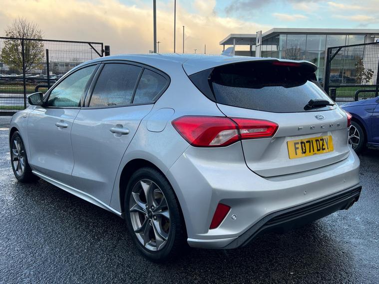 This 2022 Ford Focus ST-Line Edition boasts a full service history, with its last service completed on 24 January 2025, and comes with a 12 month MOT for your peace of mind. This one owner vehicle is a Euro 6 compliant 1.0L petrol model, presented in the desirable ST-Line trim. It benefits from the ST-Line Design Pack and a Driver Assistance Pack, which includes adaptive cruise control. For convenience, it features front and rear parking sensors with parking assistance, and LED reflector headlamps. Inside, you'll find manual air conditioning to keep you comfortable.The Ford Focus ST-Line Edition offers impressive performance with a 0-62mph acceleration time of 10.0 seconds. Its fuel economy is a notable highlight, achieving 51 miles per gallon, which is better than many similar vehicles. This model also offers low CO2 emissions and a large boot space, making it a practical choice for everyday use and longer journeys..