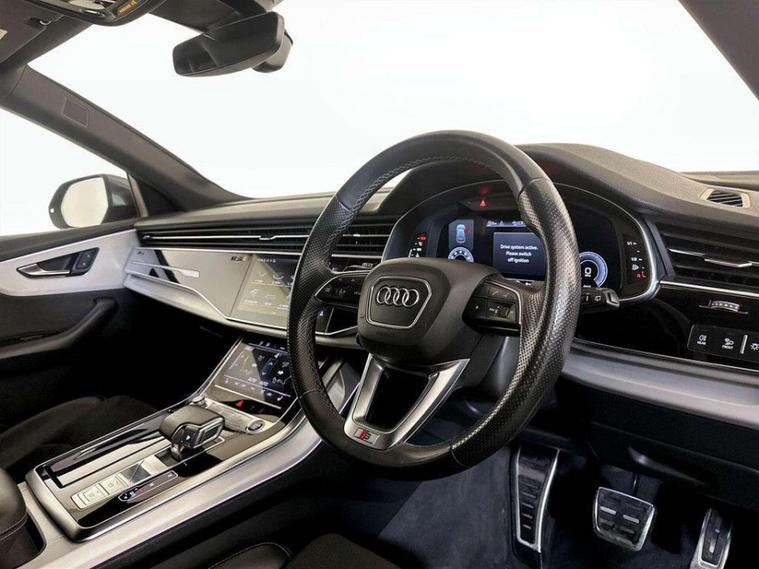 This 2021 Audi Q8 TFSI V6 S line is a superb example, having been owned by just one discerning individual. This impressive four wheel drive SUV boasts a powerful 3.0 litre petrol engine, meeting Euro 6 emissions standards. Its S line trim level ensures a sporty aesthetic and enhanced specification, complemented by advanced HD Matrix LED headlights with dynamic front and rear indicators. For convenience, it features a rear view camera for easier parking, electrically adjustable front seats with a driver memory function, and a 2 zone automatic climate control system. Comfort is further enhanced by heated front seats, making every journey a pleasure. The Audi Q8 TFSI V6 S line offers a compelling blend of performance and practicality. Its acceleration is notably brisk, achieving 0 to 62 miles per hour in just 5.9 seconds, demonstrating its dynamic capabilities. This performance, combined with its substantial 2800 kg towing weight, positions it as a versatile choice for various needs. Furthermore, the generous boot space provides ample room for luggage or shopping, making it an ideal companion for both daily commutes and longer adventures.For peace of mind this vehicle has only had 1 registered owner and has completed a multi point AA dealer's website finance is also available.We are open 7 days a week and have more than 1500 cars to choose from.All our Euro 4 Petrol and Euro 6 Diesel vehicles meet the ULEZ standard.Vehicle specification can be found below. From time to time vehicles have manufacturer recalls notified. Please read our recall policy on our website for further information..