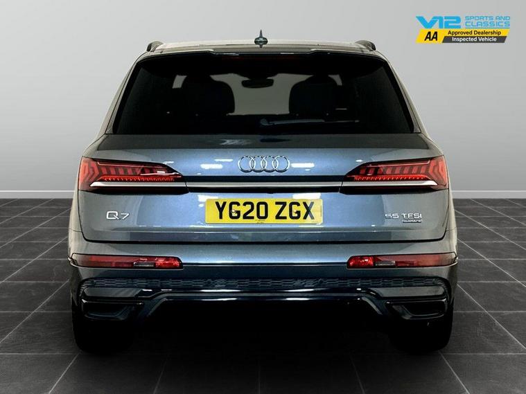 This 2020 Audi Q7 TFSI V6 Black Edition boasts a single owner from new, offering a pristine example of this luxurious and capable SUV. Featuring a powerful 3.0 litre petrol engine paired with Audi's renowned four wheel drive system, this Euro 6 compliant model is ready for any journey. The Black Edition trim ensures a striking presence, complemented by advanced Audi Matrix LED headlights with dynamic indicators. Inside, you'll find a spacious cabin with seven seats, perfect for families, and a large boot space for all your luggage. Comfort is paramount with heated front seats and deluxe four zone automatic climate control, while the Audi Smartphone Interface keeps you connected with Android Auto and Apple CarPlay. Parking is made effortless with a rear view camera and parking assistance. This Q7 stands out with its impressive performance, accelerating from 0 to 62mph in just 5.9 seconds, demonstrating its dynamic capabilities. Its substantial 3500 kg towing weight makes it a versatile choice for those needing to tow. Furthermore, its placement in a low insurance group indicates that running costs are surprisingly economical for a vehicle of this calibre, making it a more attractive proposition than many similar models.For peace of mind this vehicle has only had 1 registered owner and has completed a multi point AA dealer's website finance is also available.We are open 7 days a week and have more than 1500 cars to choose from.All our Euro 4 Petrol and Euro 6 Diesel vehicles meet the ULEZ standard.Vehicle specification can be found below. From time to time vehicles have manufacturer recalls notified. Please read our recall policy on our website for further information..
