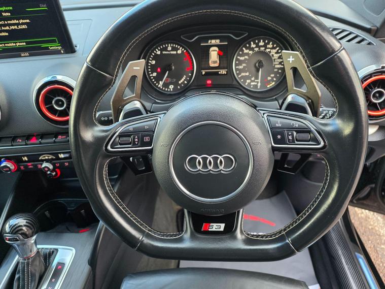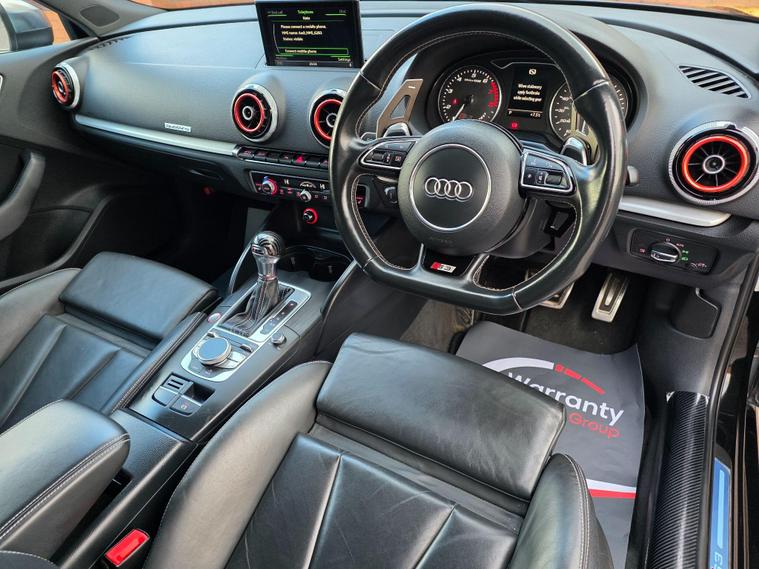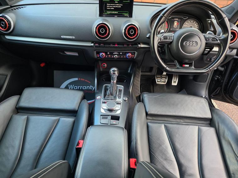 We are proud to present for sale this stunning high specification AUDI S3 Quattro DSG finished In Metalic Jet black. The Audi S3 is a four-wheel-drive hot hatch, providing high performance along with excellent handling and comfort . This vehicle comes with Xenon lights, Leather interior, Front & rear parking aid, Climate control, Reversing camera, SATNAV, Peddle shift, Led day lights, Bluetooth, LED lights, New service, 19'' alloys, 2 Keys, Excellent condition, E/Folding mirrors, Climate, FULL AUDI SERVICE HISTORY, 12 MONTHS PARTS AND LABOUR WARRANTY INCLUDED, ALL MAJOR CREDIT/DEBIT CARDS ARE ACCEPTED, PART EXCHANGE WELCOME, FINANCE AVAILABLE.