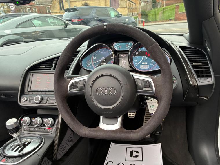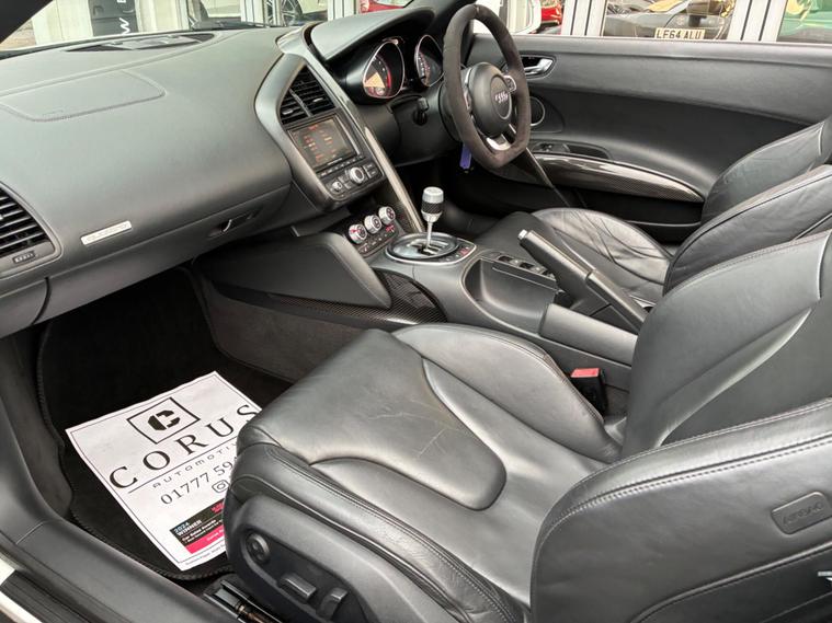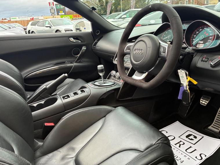 This 2010 Audi R8 FSI V10 is a remarkable example of German engineering, boasting a powerful 5.2 litre petrol engine and a sophisticated four wheel drive system. Inside, you will find a luxurious Leather and Alcantara interior, part of the Audi Exclusive Pack2, complemented by striking Carbon door sill trim featuring Aluminium inserts and an R8 badge. The vehicle is presented on impressive 19 inch 5 Arm double spoke alloy wheels with a sleek Titanium finish, adding to its distinctive road presence.Experience exhilarating performance with this R8, capable of accelerating from 0 to 62 miles per hour in just 4.1 seconds. This impressive acceleration demonstrates a level of responsiveness and dynamism that sets it apart from many other vehicles in its class. The combination of its potent V10 engine, advanced drivetrain, and carefully curated features ensures a driving experience that is both thrilling and refined.This car comes with full service history and has just had a fresh service by ourselves and a 200 point health check in our workshop. Included in the preparation we also do a full electronic diagnostic health check with a printout for peace of mind.We have also had the car through our bodyshop for inspection and quality checks, All our cars come fully valeted including a full polish and wax.Please contact a member of our team to arrange a private viewing appointment at our forecourt in Retford, Nottinghamshire . With all main dealership facilities, we offer extremely competitive part exchange prices, finance options and nationwide delivery at a time convenient to you!# Every Vehicle comes with 3 months warranty as standard and breakdown cover and a full Hpi Certificate # please check specifications prior to purchase.