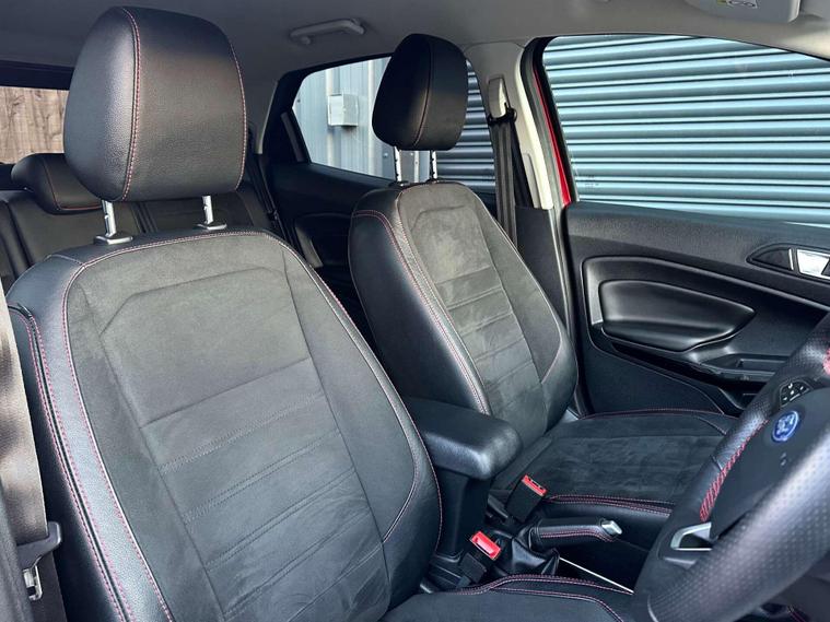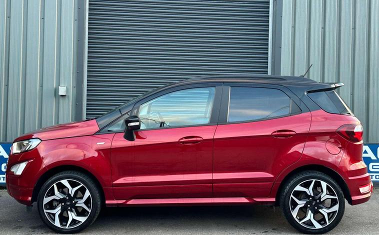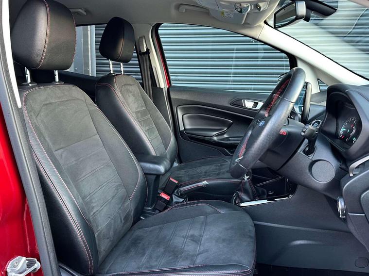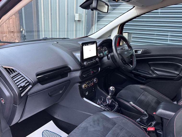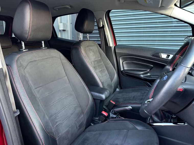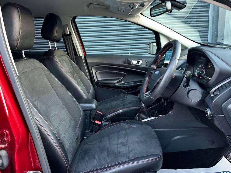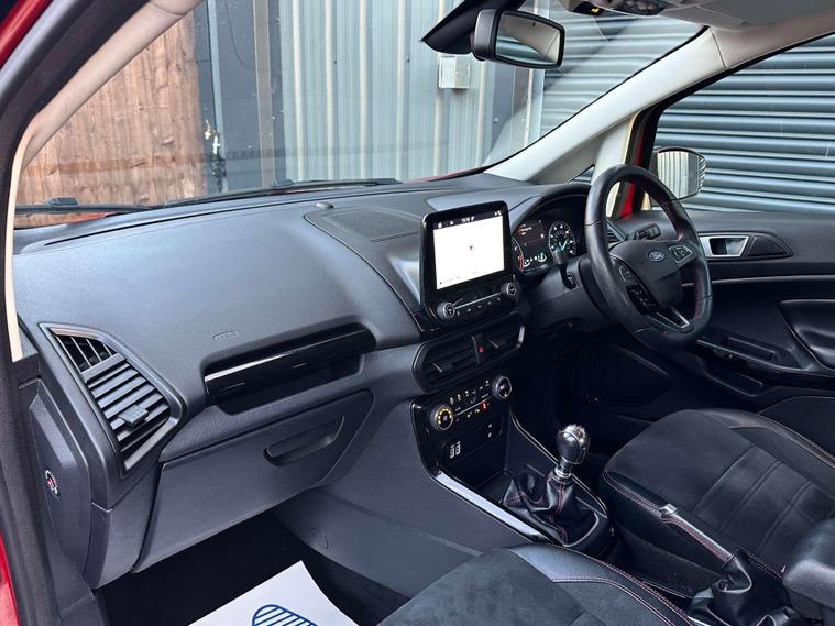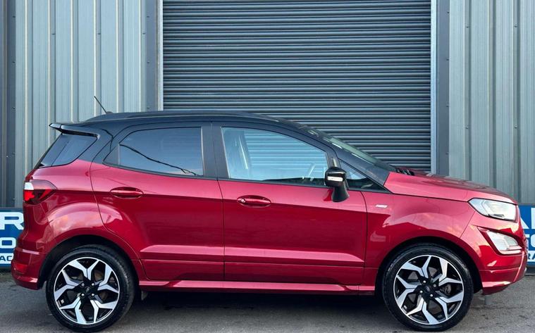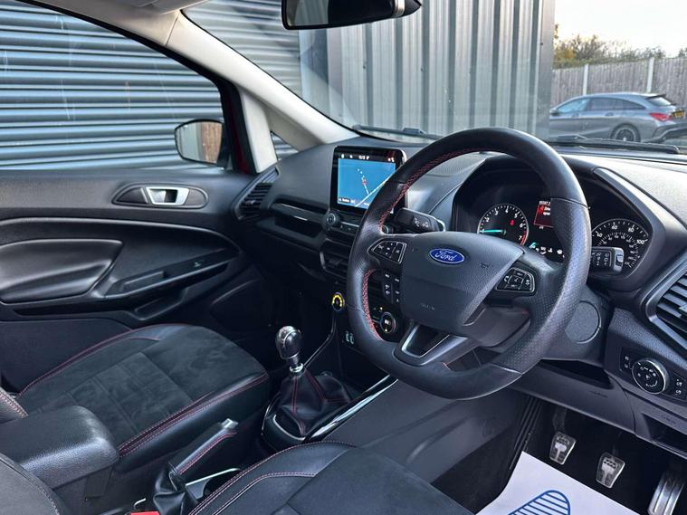 Ford ECOSPORT 1.0 EcoSport ST-Line 5dr ULEZ FREE. Finished in metallic candy red with full black cosmos leather/alcantara interior, anthracite roof lining, contrast stitching and piano trim.With 17'' diamond cut alloy wheels, satellite navigation, reversing camera, Apple CarPlay, Android auto, FORD premium speaker system, dual climate control air conditioning, lane departure warning, collision alert, cruise control, rear parking Sensors, electric adjusting door mirrors with folding functions, DAB digital radio, sports heated multifunction leather steering wheel, Aux/USB connection, Bluetooth phone preparation, automatic lights and wipers. Here at Saracen Motor Group we have been awarded AA Platinum dealership recognition along with being nominated for best customer service by Autotrader for 21, 22, 23, 24 & 2025. We are a 5 star dealership with only 5 star reviews across all internet platforms including Autotrader and have been regarded as one of the best dealerships to buy from in the UK. Our preparation inspected each vehicle to the highest level possible for it’s age and mileage. You can rest assure your next car has been cared for to the highest standard. Service history, V5 and the HPI certificate will all be present on viewing and collection. With our location based in Battlesbridge, Essex you can enjoy a haggle-free buying experience where you can drive away the same day if prior arranged, additional fees apply please see our website for details..