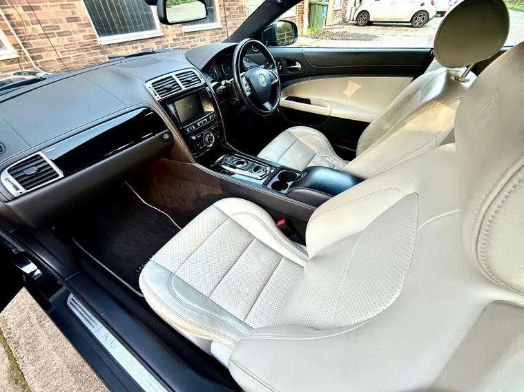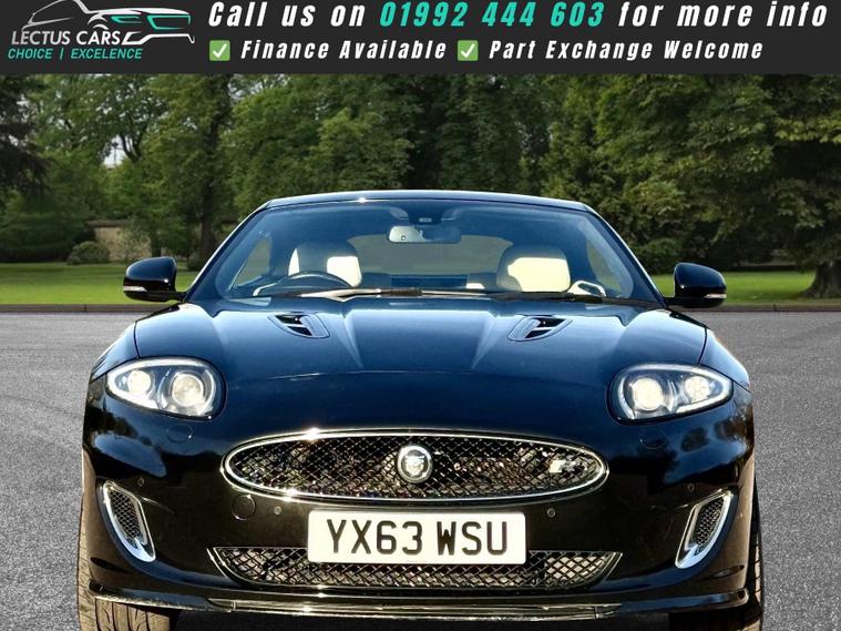 Finished in Ultimate Black metallic with contrasting Beige Leather this 2014 Jaguar XKR V8 boasts a full service history and has had only three owners, with the last owner since 2016.last service carried out at 50, 199 miles in January 2025 and will be serviced befor delivery.offering excellent provenance. Under the bonnet, you'll find a powerful 5.0L petrol engine, paired with a smooth automatic transmission. Inside, the cabin is appointed with 16x16 way electric performance seats for optimal comfort and support. Enjoy a consistently pleasant environment thanks to the dual zone automatic climate control, and navigate tight spots with ease using the front parking aid, complete with a touch screen visual indicator. The car also features bi-function HID Xenon headlights with LED daytime running lights, and automatic headlight activation for enhanced visibility. Never get lost with the Satellite Navigation system. Multi-Function steering wheel with Paddle Shift and Cruise control.Experience exhilarating performance with this Jaguar XKR, capable of accelerating from 0 to 60mph in a swift 4.6 seconds. This impressive acceleration figure demonstrates a higher level of performance compared to many other vehicles in its class. The combination of its potent V8 engine, sophisticated handling, and luxurious interior appointments makes this 2014 XKR a truly compelling proposition for any discerning driver.See the video in the advert or use this link: https://youtu.be/KdSHCPYjCQQ?si=sUdDJdNh85ny73H_0% Deposit when financing through us.DELIVERY AVAILABLE. The Car Comes With A 6 Month Premium Nationwide Parts And Labour Warranty Finance Available From 10.9 % Apr All Inspections Welcome AA/RAC Px Welcome Viewing By Appointment Only Please Call John On 01992692105 Or 01992692105.