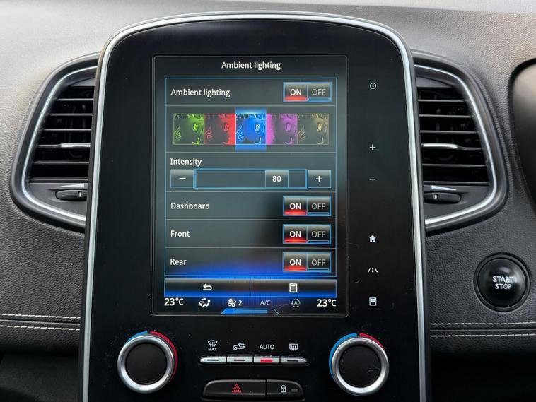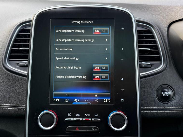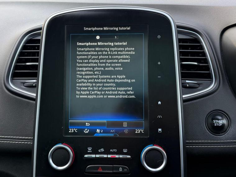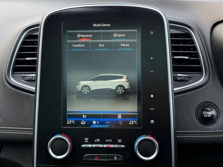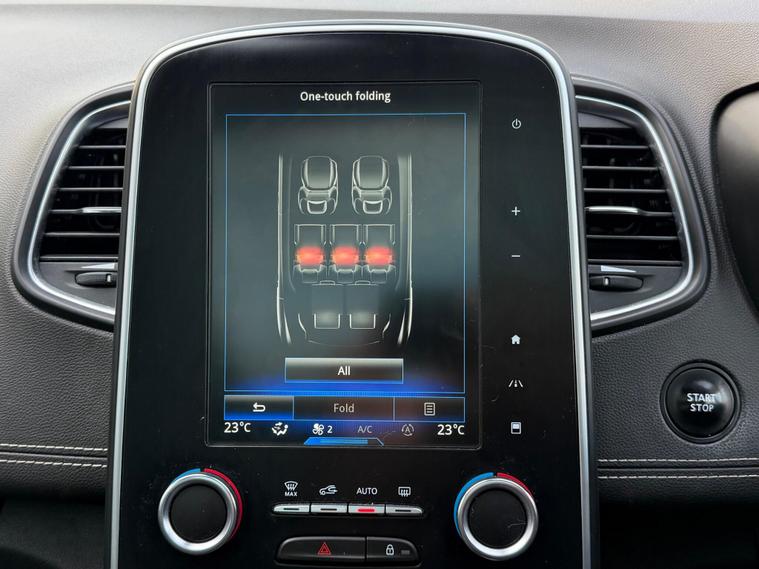 Discover this 2017 Renault Grand Scenic dCi Dynamique S Nav, a versatile 7 seater that offers an exceptional blend of practicality and modern technology. This Euro 6 compliant model boasts a fuel efficient 1.5L diesel engine, making it an economical choice for families. Inside, you'll find the R Link 2 multimedia system featuring an 8.7 inch touchscreen with Bluetooth connectivity, alongside Android Auto for seamless smartphone integration. Enjoy an immersive audio experience with the Arkamys Auditorium 3D sound system and a premium feel thanks to the colour Head Up Display with adjustable brightness. The panoramic fixed glass sunroof with an electric sunblind adds a sense of spaciousness and light to the cabin..