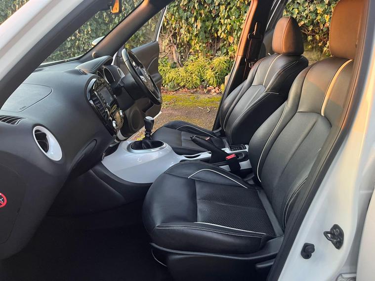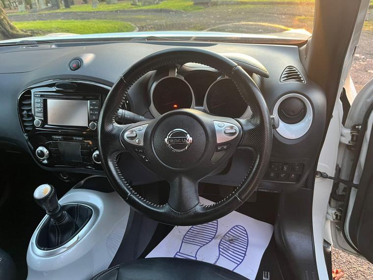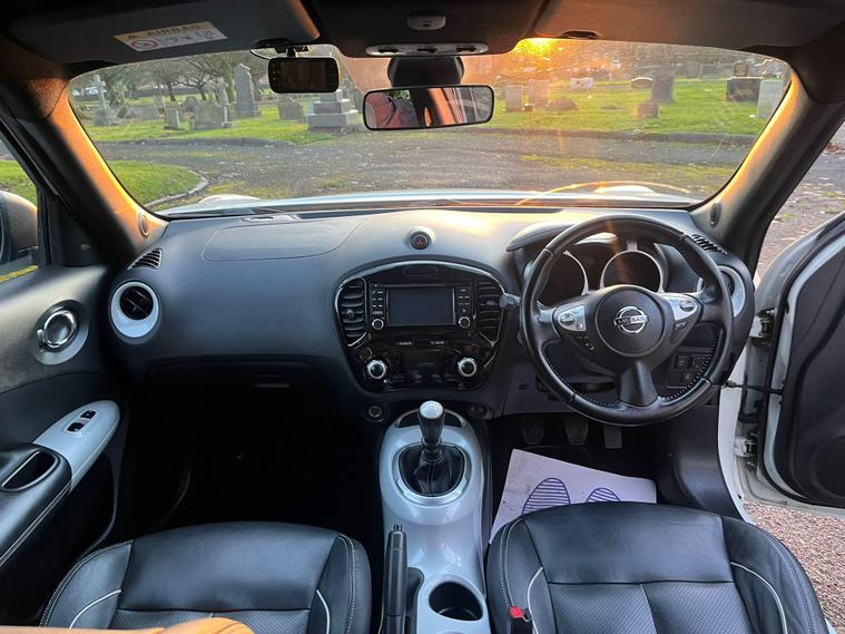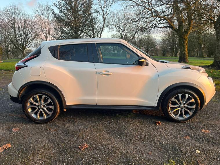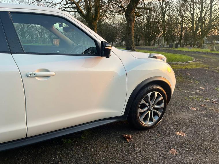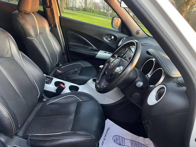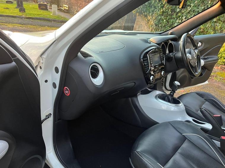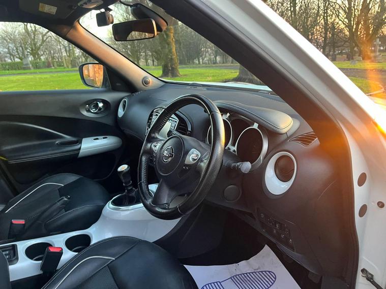 NISSAN JUKE 1.2 DIG-T TEKNA IN A WHITE EXTERIOR COLOUR WITH BLACK LEATHER INTERIOR... COMES WITH 2 REMOTE KEYS... FULL SERVICE HISTORY WITH A RECENT SERVICE DONE... COMES WITH A LONG MOT... FEATURING 360 REVERSE CAMERAS... KEYLESS ENTRY AND START... FOG LIGHTS... AUTO STOP/START... TYRE PRESSURE RESET CONTROL... PRIVACY GLASS... CD TOUCHSCREEN RADIO WITH BUITL IN SATNAV, AUX/USB PORTS AND RADIO SETTINGS... AUTO LIGHTS/WIPERS... MULTIFUNCTION STEERING WHEEL WITH RADIO AND CRUISE CONTROLS... CLIMATE CONTROL WITH FRONT AND BACK HEATED WINDOWS... FUEL CAP RELEASE LEVER... ELECTRIC ADJUSTABLE SIDE FOLDING MIRRORS... CENTRAL LOCKING DOOR CONTROLS... HEADLIGHT ADJUSTMENT CONTROL... ALL ROUND ELECTRIC WINDOWS... CUP HOLDERS... ALLOY WHEELS WITH DECENT TREAD ALL ROUND... WARRANTY INCLUDED... ALL PART EXCHANGES ARE WELCOME... OPTIONAL NATIONWIDE DELIVERY EXTRA... BOOK-INS AND VIDEO VIEWINGS ARE AVAILABLE... TEST DRIVES ARE WELCOME... FOR MORE INFORMATION CALL US TODAY ON 01616232309. !!!CAT N BACK IN JUNE 2024!!!.