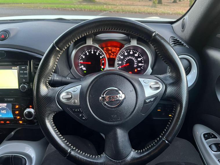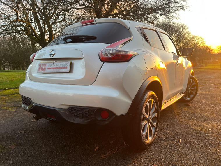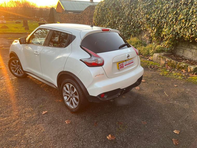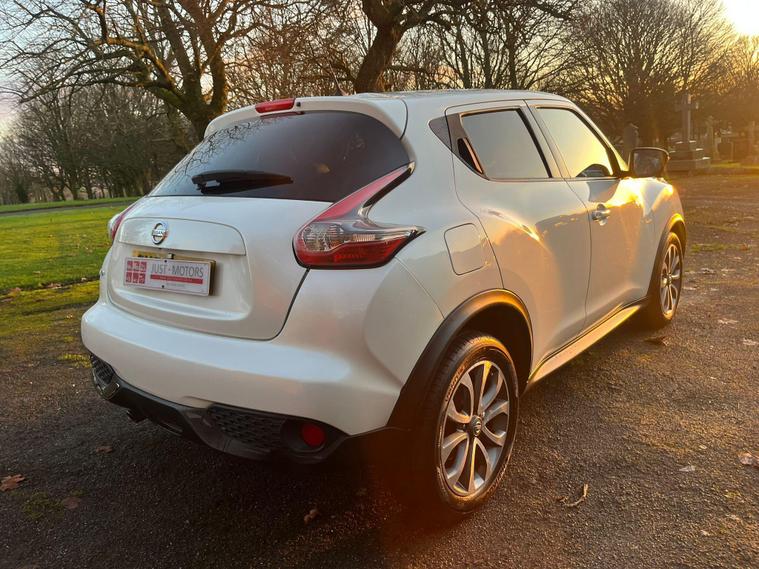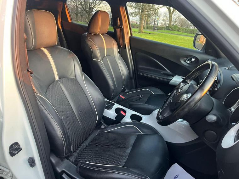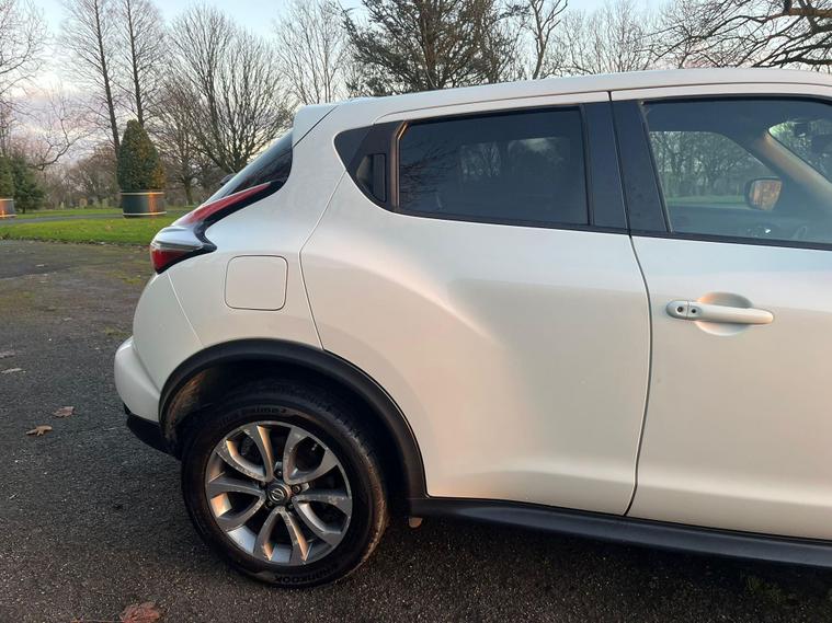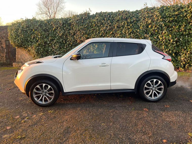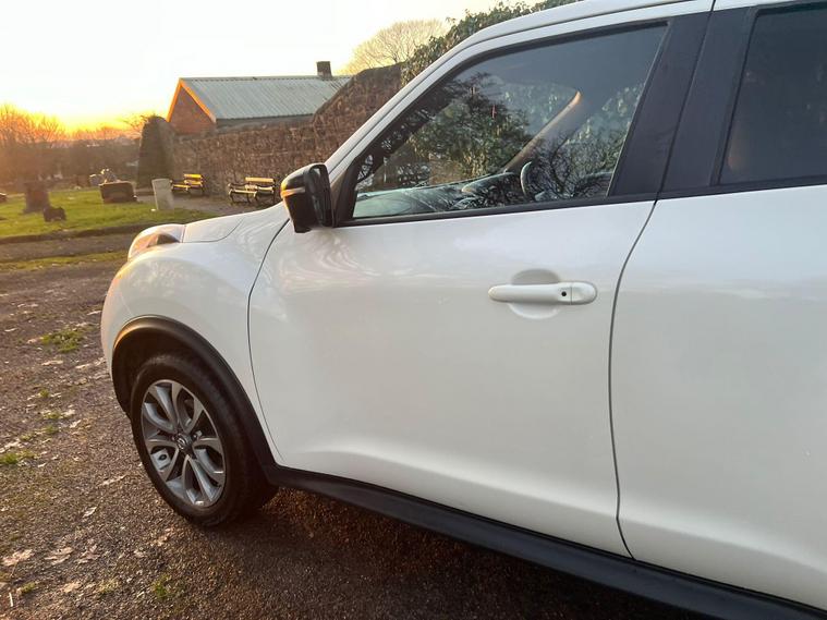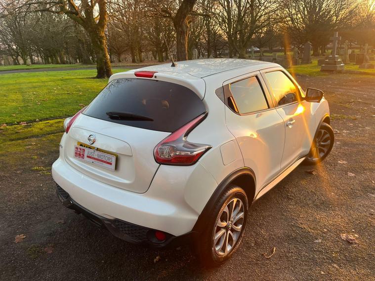 NISSAN JUKE 1.2 DIG-T TEKNA IN A WHITE EXTERIOR COLOUR WITH BLACK LEATHER INTERIOR... COMES WITH 2 REMOTE KEYS... FULL SERVICE HISTORY WITH A RECENT SERVICE DONE... COMES WITH A LONG MOT... FEATURING 360 REVERSE CAMERAS... KEYLESS ENTRY AND START... FOG LIGHTS... AUTO STOP/START... TYRE PRESSURE RESET CONTROL... PRIVACY GLASS... CD TOUCHSCREEN RADIO WITH BUITL IN SATNAV, AUX/USB PORTS AND RADIO SETTINGS... AUTO LIGHTS/WIPERS... MULTIFUNCTION STEERING WHEEL WITH RADIO AND CRUISE CONTROLS... CLIMATE CONTROL WITH FRONT AND BACK HEATED WINDOWS... FUEL CAP RELEASE LEVER... ELECTRIC ADJUSTABLE SIDE FOLDING MIRRORS... CENTRAL LOCKING DOOR CONTROLS... HEADLIGHT ADJUSTMENT CONTROL... ALL ROUND ELECTRIC WINDOWS... CUP HOLDERS... ALLOY WHEELS WITH DECENT TREAD ALL ROUND... WARRANTY INCLUDED... ALL PART EXCHANGES ARE WELCOME... OPTIONAL NATIONWIDE DELIVERY EXTRA... BOOK-INS AND VIDEO VIEWINGS ARE AVAILABLE... TEST DRIVES ARE WELCOME... FOR MORE INFORMATION CALL US TODAY ON 01616232309. !!!CAT N BACK IN JUNE 2024!!!.