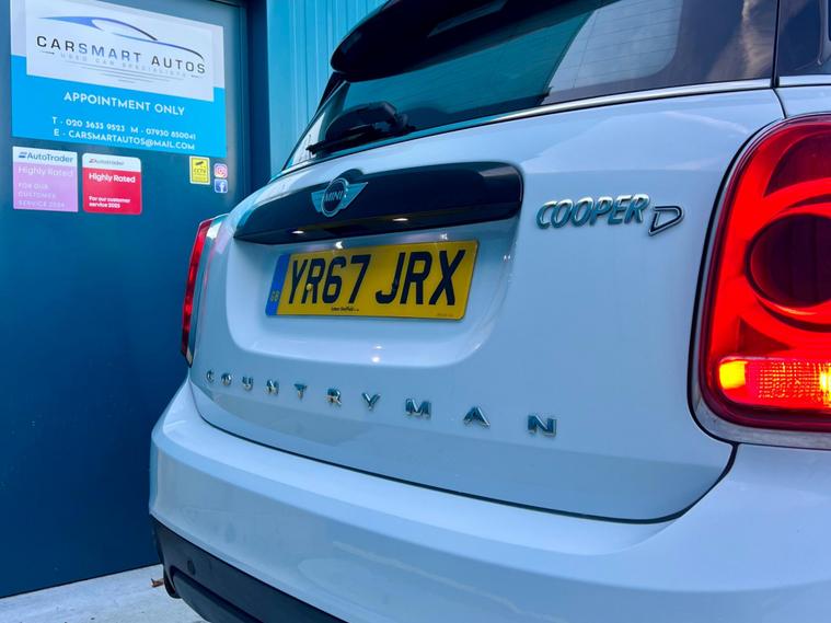 Stunning 2017 Great-Spec Mini Cooper 2.0 Countryman Hatchback + Chilli Pack finished in its most Desirable Colour Combination! This Beauty is a Real Head-Turner which has been Maintained Superbly & Drives like a Dream! New 18” Cooper Sport Alloy Wheels finished in Gloss Black to match Roof & Wing-Mirrors! Only 1-Previous Owner! HPI Clear. ULEZ. 2 x Remote Keys. MOT to Sept 10th 2026 (Zero Advisories) No Advisories in last 5-Mot Tests! FULL SERVICE HISTORY some from Mini Main Dealer. Latest Service @ 40, 761 Miles in Aug 2025. Part Black Leather Interior in Great Condition along with Fantastic Bodywork! 4 x Good Thread Tyres. Light-Up Door Handles. Sport/ Green Driving Mode. Sat-Nav. Heated Seats. Rear Parking Sensors. Roof-Rails. Parking-Assist. Collision-Detection. Cruise-Control. Privacy Glass. Traction Control. Ambient Lighting with Choice of Colours. Bluetooth. Mobile Phone Connection. Xenon Headlights. LED Rear Lights. Auto Lights. Voice Control. Electric Handbrake. Auto Engine Start/ Stop Button. Climate Control. DAB/ Radio/ Aux/ Usb. Media Player. Multifunctional Steering Wheel. Electric Windows. Leather Arm-Rest. Isofix. Cupholders — CarSmart Autos are an FCA Regulated 5* Rated Company on all Platforms & Winner of the ‘HIGHLY-RATED’ Autotrader Award for 2025! We are also Approved by AA Cars Trading Standards which gives the Ultimate Reassurance to all Customers! We Specialise in the supply of Quality used Cars to the public in Essex, London, Hertfordshire & the wider area. All Cars are HPI clear & SERVICED as required. Apply for FINANCE today. PART-EX Available + NATIONWIDE DELIVERY. All Cars are backed by a 3-Month Extendable Market Leading Warranty!.