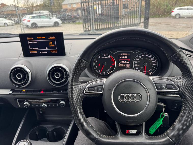 This Audi A3 TFSI S line from 2014 offers excellent provenance, having been owned by only two previous keepers. It features a 1.4 litre petrol engine and meets Euro 6 emissions standards. Inside, you'll find the comfort of air conditioning and the luxury of Fine Nappa Leather upholstery in black, including Super Sports Seats. For convenience, this model is equipped with a satellite navigation system and an Audi Parking System Rear with acoustic indicators, making parking easier.This A3 TFSI S line is a compelling choice, offering impressive performance with a 0-62mph acceleration time of just 8.4 seconds. Its fuel economy is a standout feature, achieving an excellent 59 miles per gallon, which indicates it is more economical than many similar vehicles. Furthermore, its low CO2 emissions highlight its environmental consideration compared to other cars. The generous boot space also ensures practicality for everyday use and longer journeys..