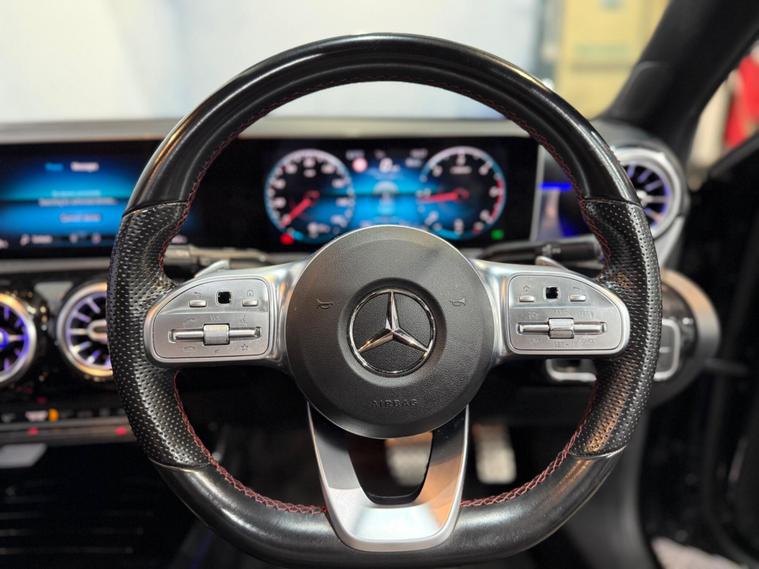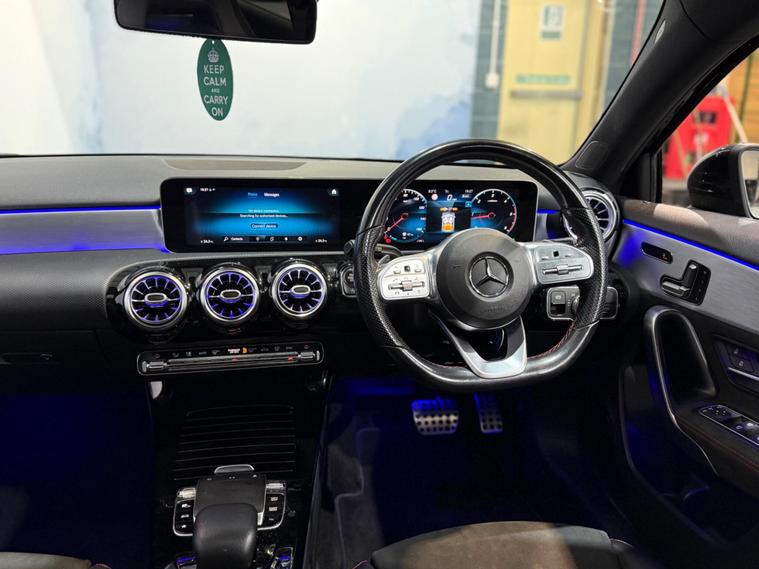 This 2019 Mercedes Benz A Class A200d AMG Line Premium Plus offers a refined driving experience with its powerful 2.0L diesel engine. As a Euro 6 compliant vehicle, it meets stringent emission standards. The AMG Line trim enhances its sporty appeal, while the Premium Plus Package brings a host of desirable features. These include advanced LED headlights for superior visibility, keyless entry for convenience, and a panoramic sunroof that brightens the cabin. Inside, you'll find heated seats with memory function for personalised comfort, and dual zone THERMOTRONIC climate control to maintain the perfect temperature.The A200d AMG Line Premium Plus excels with its impressive performance, accelerating from 0 to 62mph in just 8.1 seconds, demonstrating its dynamic capability. Parking is made effortless thanks to front and rear parking sensors, a 180 degree reversing camera with guidelines, and automatic headlamp activation. This Mercedes Benz also boasts a generous boot space, making it practical for everyday use and longer journeys. These carefully selected features and performance figures highlight how this A Class stands out from other vehicles in its class, offering a superior combination of luxury, technology, and driving pleasure..