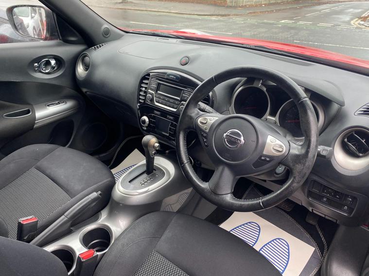 This NISSAN JUKE features stylish motoring with lesser available automatic transmission, Finished in Red colourway, November 2026 Mot, Road tax at 215 pounds per year, spec including alloys, CD player with Bluetooth/USB/Aux, Climate controlled air con, Rear parking sensors, E/windows, E/Mirrors, Remote c/locking, with both keys supplied , Multi airbags, HPI clear with certificate, No admin fees to pay, All Included in the price is a 12 month warranty with the first month given as unconditional, and then a further 11 months covering the most major parts, driveaway insurance available (Ts & Cs apply).