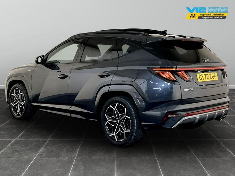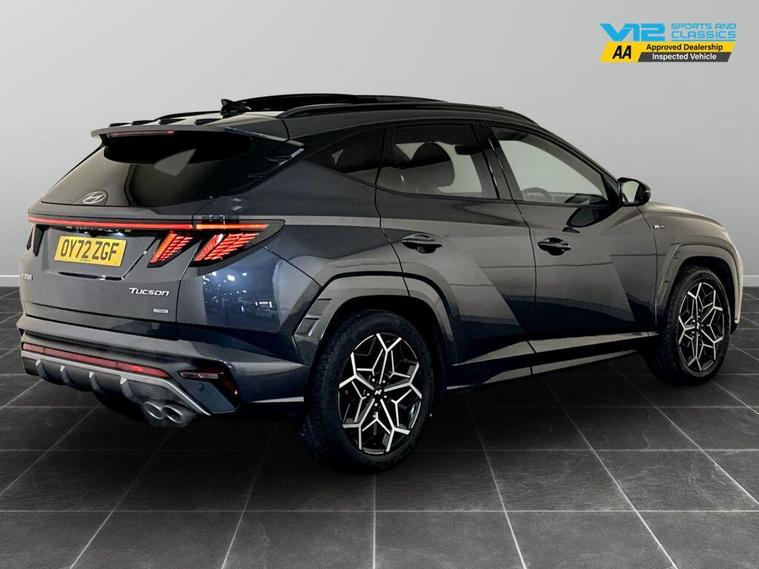 This 2022 Hyundai TUCSON T-GDi N Line S is a standout choice, offering a blend of style and practicality. As a Euro 6 compliant model, it features a 1.6 litre petrol hybrid engine paired with a smooth Four Wheel Drive system, ensuring efficient and capable performance. Inside, you'll find a comfortable cabin equipped with heated front seats for those colder mornings and a wireless phone charging pad to keep your devices powered up. The N Line S trim also boasts automatic headlights that activate with a dusk sensor, and for an enhanced driving experience, a panoramic glass sunroof with electric tilt and slide functionality. This TUCSON is designed to impress, with a brisk 0-62mph acceleration time of just 9.0 seconds, demonstrating its responsive power. Its large boot space offers excellent versatility for shopping trips or luggage, making it a practical companion for everyday life. Furthermore, its placement in a low insurance group means that running costs are kept to a minimum, offering you peace of mind. With Bluetooth connectivity included, you can easily stay connected on the go.For peace of mind this vehicle has completed a multi point AA inspection. Competitive finance is also available.We are open 7 days a week and have more than 1500 cars to choose from.All our Euro 4 Petrol and Euro 6 Diesel vehicles meet the ULEZ standard.Vehicle specification can be found below. From time to time vehicles have manufacturer recalls notified. Please read our recall policy on our website for further information..