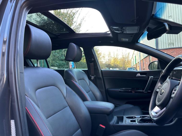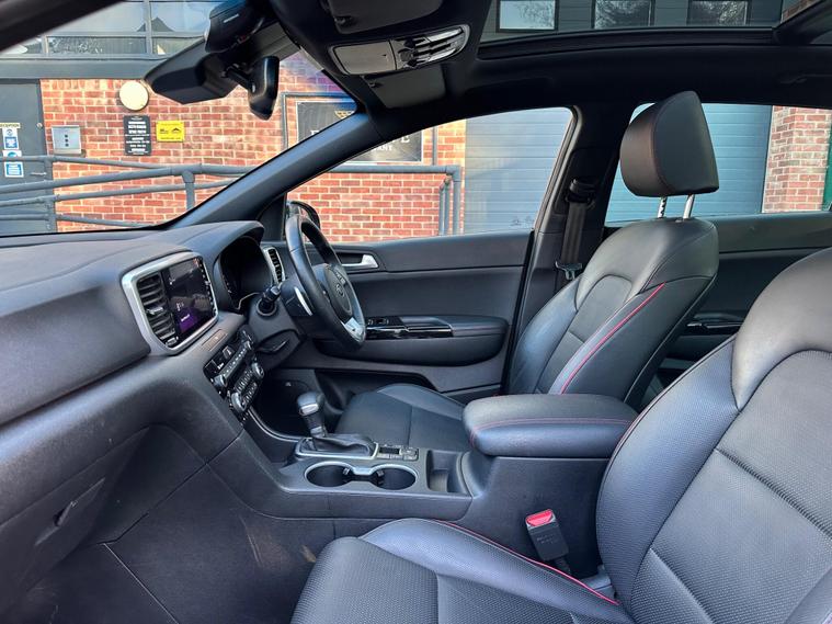 This 2020 Kia Sportage T GDi GT Line S is a superb example of a well maintained vehicle. It boasts a powerful 1.6 litre petrol engine and a responsive four wheel drive system, making it ready for any journey. As a Euro 6 compliant model, it meets current emissions standards. The GT Line S trim level offers a premium experience, enhanced by features such as LED Bi Function headlights for excellent visibility, front parking sensors and a 360 degree around view monitor to assist with manoeuvring. Inside, you will appreciate the comfort of a heated steering wheel and the expansive feel provided by the electric panoramic sunroof.This Sportage stands out with its impressive acceleration, reaching 0 to 60 miles per hour in just 8.8 seconds, demonstrating its dynamic performance. Furthermore, its large boot space offers practical versatility for shopping trips or luggage. The vehicle also benefits from being in a low insurance group, which can help to reduce your running costs compared to similar vehicles..