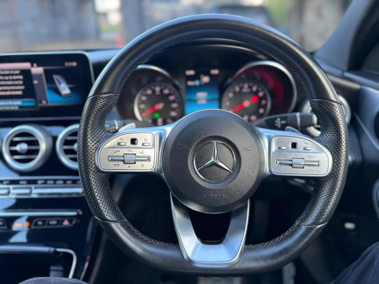 - Steering Wheel - 3-Spoke Multi-Function AMG in Black Nappa Leather with Flattened Bottom Section and Chrome Inserts and Perforated Leather in Grip Area