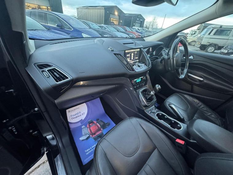 This 2016 Ford Kuga TDCi Titanium X offers an impressive 54 miles per gallon, making it a highly economical choice for your motoring needs. This Four Wheel Drive model is equipped with a 2.0 litre diesel engine and meets Euro 6 emissions standards. The Titanium X trim level ensures a premium experience, featuring heated driver and passenger seats for added comfort, and dual zone electronic automatic air conditioning for personalised cabin temperatures. Stay connected on the go with the integrated Bluetooth hands free phone system, and enjoy the spacious feel provided by the fixed panorama roof. The Bi Xenon headlights offer excellent visibility in all conditions.This Ford Kuga stands out with its excellent fuel economy of 54 mpg, demonstrating its efficiency compared to other vehicles in its class. Furthermore, its low CO2 emissions highlight its environmentally conscious design. The combination of its robust Four Wheel Drive system, comfortable interior features, and advanced lighting technology makes this Kuga TDCi Titanium X a well rounded and appealing option..