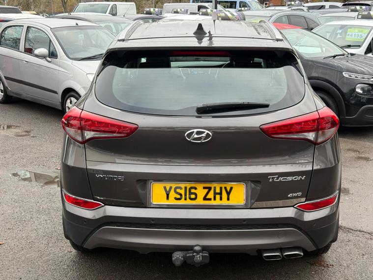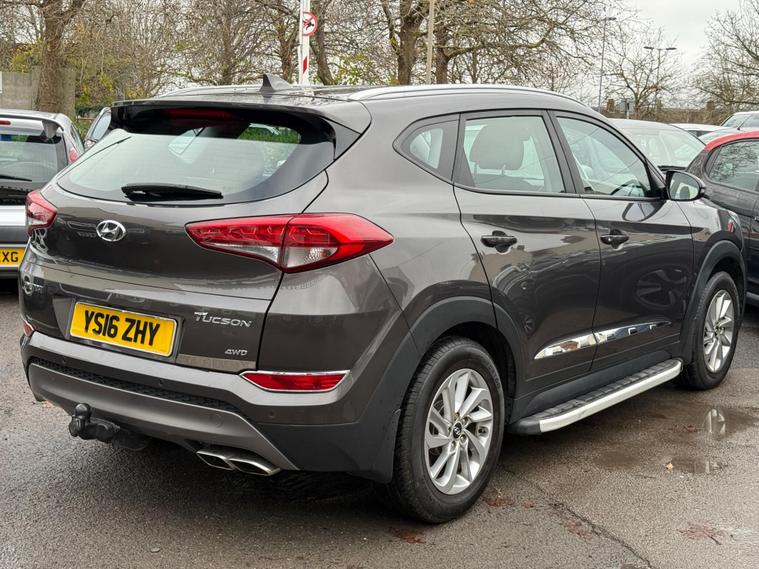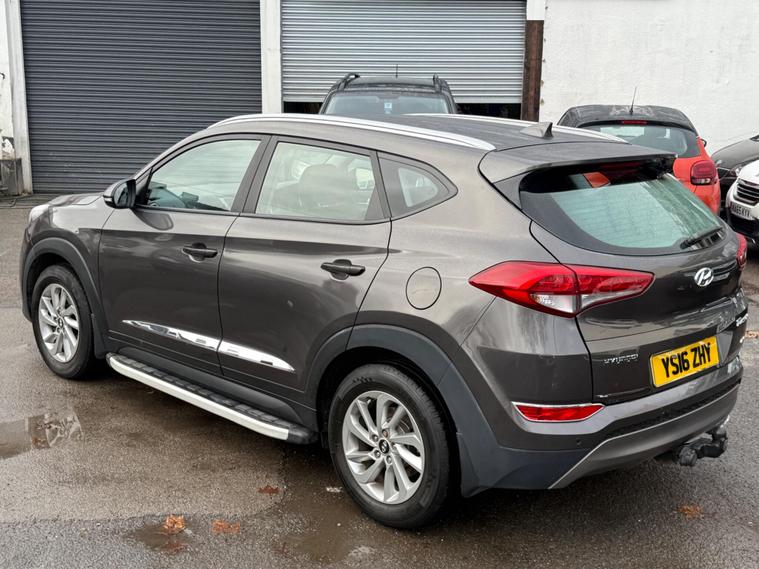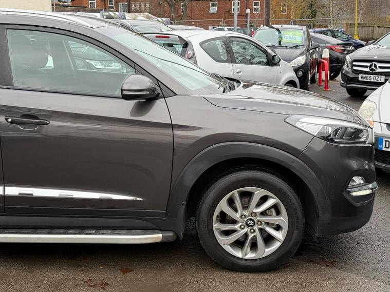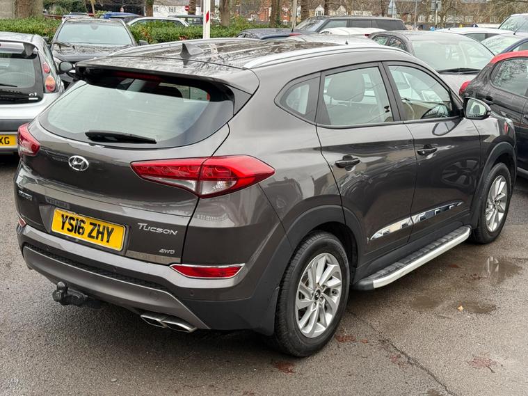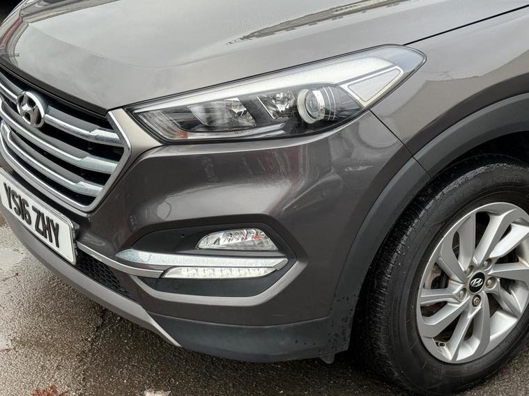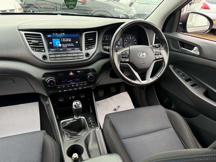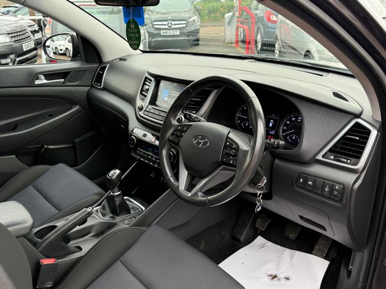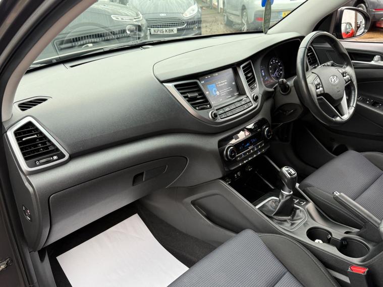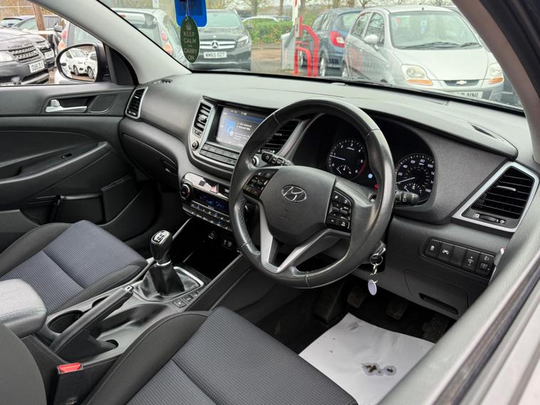 This 2016 Hyundai TUCSON CRDi SE Nav offers exceptionally low mileage for its age, having covered just 75, 643 miles. This well maintained example is equipped with a powerful 2.0L Diesel engine and a capable Four Wheel Drive system, making it ready for any journey. As a Euro 6 compliant vehicle, it meets modern emission standards. The SE Nav trim level ensures a host of desirable features, including a responsive 8in touchscreen satellite navigation system with traffic messaging channel, mapcare, and Tom Tom LIVE services, complemented by a handy reversing camera for easier parking.Further enhancing your driving experience, this TUCSON boasts dual zone climate control with an ioniser for personalised comfort, and heated front seats for those colder days. Stay connected on the go with seamless Bluetooth connectivity. The generous boot space provides ample room for luggage or shopping, a practical advantage over many similar vehicles. With a substantial towing weight of 2200 kg, this Hyundai TUCSON CRDi SE Nav is a versatile and well equipped SUV, offering a compelling blend of comfort, technology, and utility..