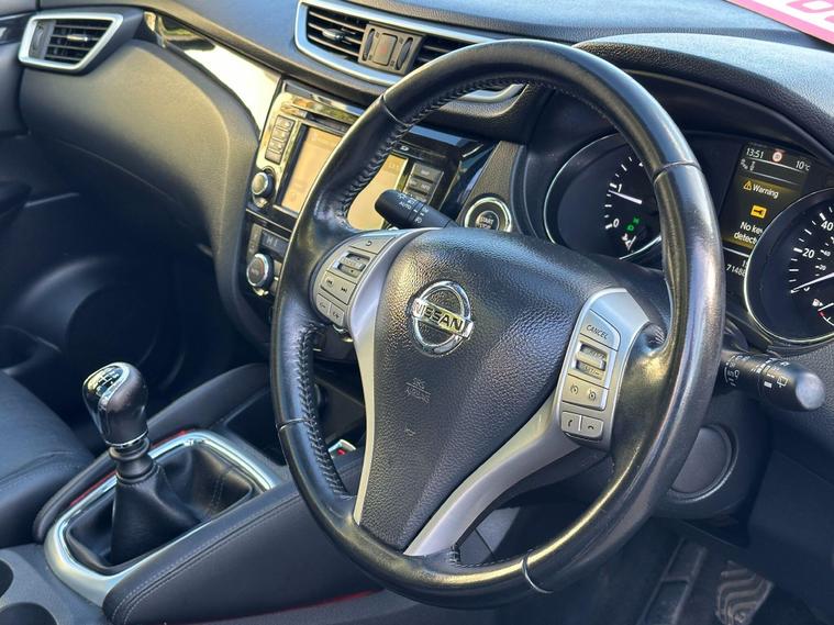 This 2015 Nissan Qashqai dCi Tekna offers exceptional value with its remarkably low mileage of just 71, 500 miles, a clear vehicle history check, and a Euro 6 compliant 1.5L diesel engine. As a Tekna trim, this Qashqai comes equipped with desirable features such as Bi-LED headlights, Intelligent Key with keyless entry, rear parking sensors for easier manoeuvring, and Bluetooth integration for seamless phone connectivity. The dual zone climate control ensures comfort for all occupants, making this a well appointed and practical choice.The highlights of this Nissan Qashqai demonstrate its superior efficiency and affordability compared to similar vehicles. It boasts an impressive fuel economy of 71 miles per gallon, placing it in a low insurance group and emitting low CO2, which indicates lower running costs and a reduced environmental impact. These factors combined make this Qashqai a sensible and economical option for everyday driving..