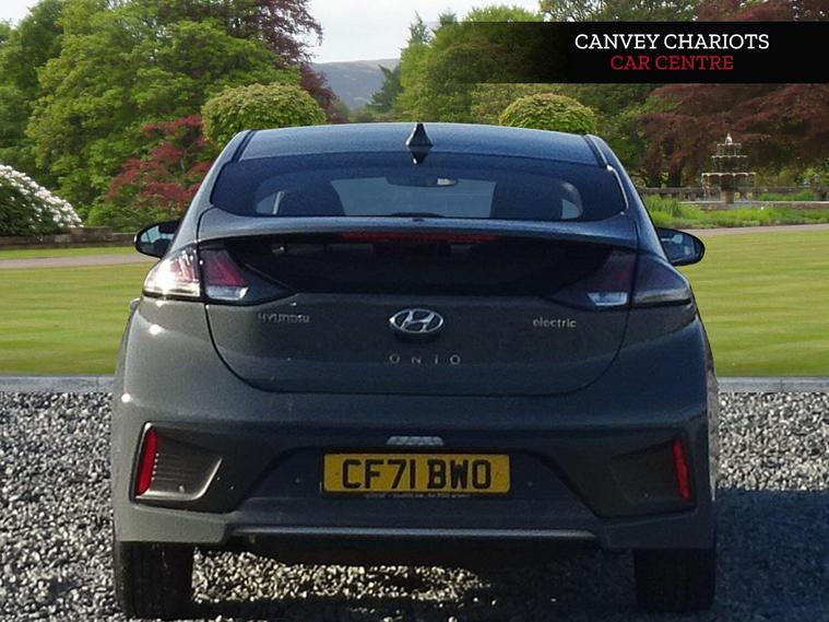 This 2021 Hyundai IONIQ Premium is a superb example, having been owned by only one person since new. This electric vehicle boasts a 43 kWh battery, offering a maximum range of 193 miles when new, making it ideal for both daily commutes and longer journeys. Charging is convenient, with a full charge at home using a 7kW charger taking just 6 hours and 5 minutes, while rapid public charging can take you from empty to 80% in only 54 minutes. Key features include a wireless phone charging pad, smart key with keyless entry and engine start stop button, heated driver's seat for comfort, rear parking sensors for easier manoeuvring, and smart adaptive cruise control for relaxed driving.The Hyundai IONIQ Premium stands out with its generous boot space, providing ample room for shopping or luggage. Its electric powertrain offers a smooth and quiet driving experience, complemented by the efficiency of its battery system. The inclusion of features like adaptive cruise control and keyless entry demonstrates a thoughtful approach to driver convenience, setting it apart from other vehicles in its class. This IONIQ is a well appointed and practical choice for anyone looking for an electric car with a strong provenance and a host of useful features..