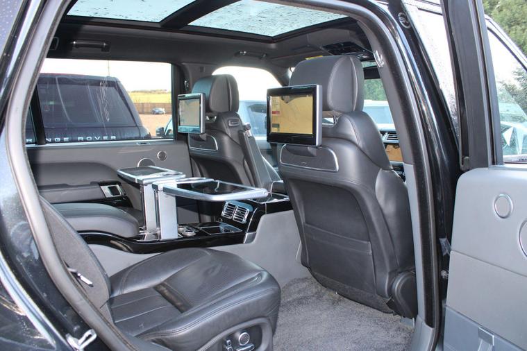 THE VOGUE CENTRE THE UK'S LARGEST RANGE ROVER SPECIALIST ARE PLEASED TO OFFER THIS UNBELIEVABLY RARE 4.4 SDV8 TOP OF THE RANGE SV LWB WITH UNBELIEVABLE SPEC THAT'S ONLY AVAILABLE ON THE SV MODELS, NEW TODAY THIS CAR WOULD BE £225, 000, REVISED AND IMPROVED 2016 MODEL, EURO 6 ULEZ AND ONLY £430 A YEAR ROAD TAX, ONLY 2 FORMER KEEPERS FROM NEW WITH FULL LAND ROVER MAIN DEALER SERVICE HISTORY JUST BEEN FULLY SERVICED AND INSPECTED, FINISHED IN A FACTORY DUO TONE BLACK/GREY WITH FULL EBONY OXFORD HIDE AND GRAND BLACK LACQUER FINISHERS -- FREE 6 MONTHS PARTS AND LABOUR WARRANTY INCLUDING BREAKDOWN COVER AND COURTESY CAR -- FREE 12 MONTHS AA COVER OR 12 MONTHS UPGRADED AA COVER IF YOU ARE ALREADY A AA MEMBER -- FREE FULL MOT WITH EVEN THE ADVISORIES DONE -- FULL INSPECTION WITH ANY FAULTS FIXED BACKED UP BY A 30 DAYS MONEY BACK GUARANTEE -- Rear executive seats with full body massage - Rear passenger footrest - Rear electric tables - Champagne cooler - Walnut boot floor - Electric tow bar - 1700 watt meridian sound system - Leather everything even the parcleshelf and boot surround are leather - Traffic Sign Recognition with Lane Departure Warning - 22'' alloy wheels - Opening panoramic glass Roof - 10.2 inc rear DVD/TV entertainment screens with remote and wireless headphones - Heated Leather Steering Wheel - 360 surround cameras - Blind spot monitor - High beam assist - Heated/cooled front seats with full body massage - Soft close doors plus auto open and close tailgate - Winged headrests - Fridge - Leather headlining - Extended nappa leather to doors and dash - Adaptive Cruise Control with Queue Assist - Timed climate - Dual View Touch Screen - Freeview digital TV tuner - Digital Radio (DAB) - Bluetooth -- FINANCE AVAILABLE AT VERY COMPETITIVE RATES -- WE ARE A FAMILY RUN RANGE ROVER VOGUE SPECIALIST AND HAVE THE BIGGEST SELECTION IN THE UK WITH UP TO 70 RANGE ROVER VOGUE'S IN STOCK PLEASE SEE OUR WEB SITE dealer's website FOR FULL STOCK LIST AND UP TO 50 HD PICTURES OR IF YOU NEED ANYTHING RANGE ROVER PLEASE CALL ME JAMES DIRECT ON 01619702169.