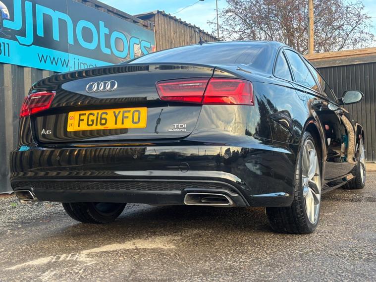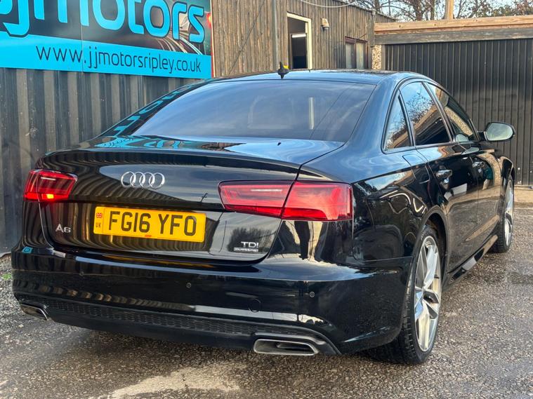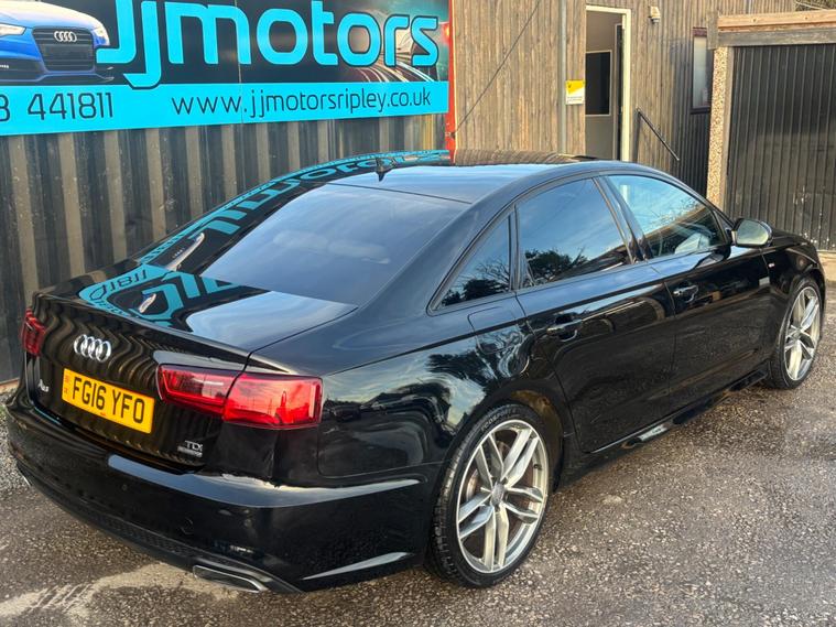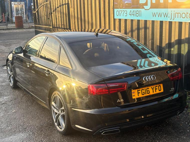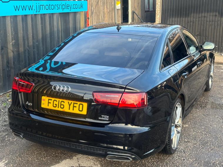 ? Call/Text/WhatsApp for more info: 01773802743 ?2016 (16) Audi A6 3.0 TDI V6 Black Edition S Tronic quattro Euro 6 (s/s) 4dr – ULEZ Compliant | Comprehensive Service History | Automatic | Premium Black EditionA luxurious, powerful, and refined executive saloon. The Black Edition trim enhances the A6 with sporty styling, premium materials, and advanced technology. Powered by the smooth and strong 3.0 V6 TDI engine paired with the S Tronic automatic gearbox and quattro all-wheel drive, this model delivers superb performance and comfort. Fully Euro 6 ULEZ compliant.Finished in Audi’s Mythos Black Metallic, this example has covered 89, 922 miles, comes with a comprehensive service history, 2 keys, and is HPI clear.? Key Details:✅ 3.0 V6 TDI Diesel – Euro 6 | ULEZ Compliant✅ S Tronic Automatic Transmission✅ quattro All-Wheel Drive✅ Mileage: 89, 922 miles✅ Registration: FG16 YFO✅ Year: 2016 (16)✅ Comprehensive Service History✅ 2 Keys Supplied✅ HPI Clear – No accident or finance history✅ Colour: Mythos Black Metallic (Audi)✅ ? Price: Please Enquire? Black Edition Features Include:? MMI Navigation Plus with Sat Nav, Bluetooth, Apple CarPlay & Android Auto? Virtual Cockpit Digital Display? Black Styling Pack – Gloss Black Grille, Trim & Mirrors? BOSE Premium Sound System? S Line Leather Interior with Heated Front Seats? 20'' Rotor Alloy Wheels? Dual-Zone Climate Control? Front & Rear Parking Sensors? Cruise Control & Drive Select Modes? LED Headlights & Dynamic Rear Indicators? Location: JJ Motors, Ripley? Call/Text/WhatsApp: 01773802743? A ULEZ-compliant Audi A6 Black Edition with a comprehensive service history, 2 keys, AWD, and premium spec – powerful, refined, and ready to drive away!? Part Exchange Welcome – Finance Available – Extended Warranty Options – Nationwide Delivery.