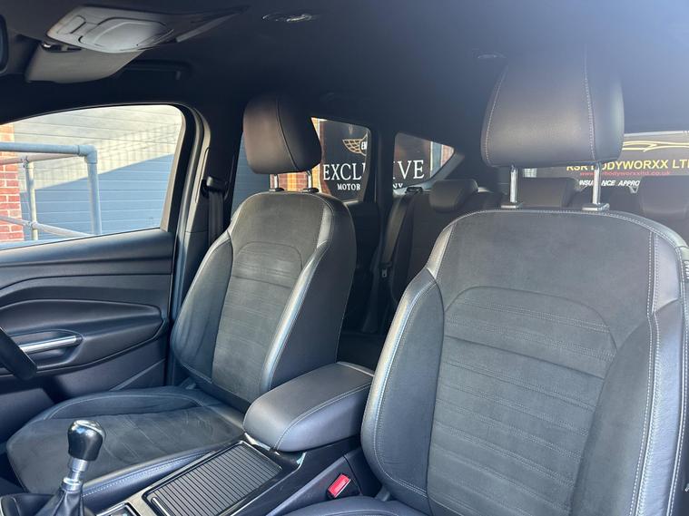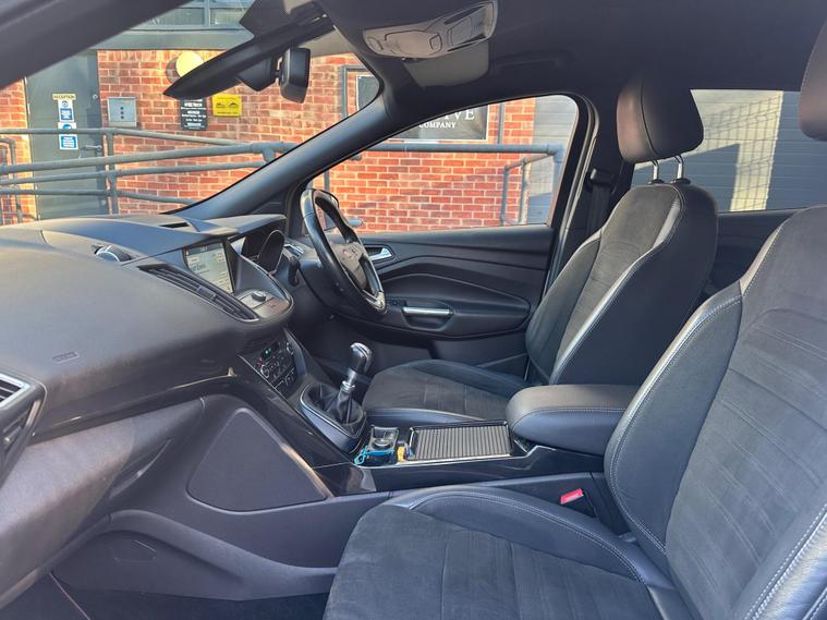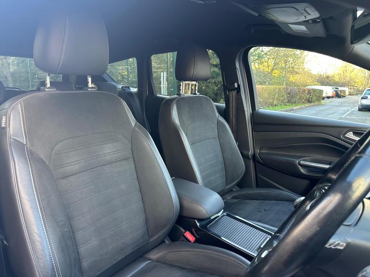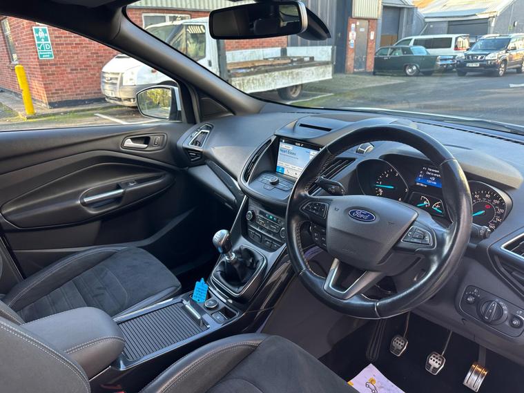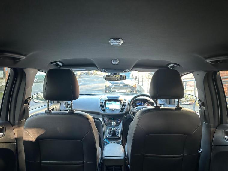 This 2016 Ford Kuga TDCi ST-Line offers an exceptional blend of style and efficiency, boasting an impressive 60 mpg fuel economy. As a Euro 6 compliant vehicle, it features a robust 2.0L diesel engine, ensuring a powerful yet economical drive. The ST-Line trim enhances its sporty appeal, and inside, you'll find the advanced SYNC 3 system with an 8-inch colour touchscreen, complete with Bluetooth, voice control, and USB connectivity for seamless integration of your devices. Automatic halogen headlights with LED daytime running lights provide excellent visibility, while the Enhanced Active Park Assist, including front and rear sensors, makes parking effortless. Comfort is also a priority, with DEATC dual-zone electronic automatic temperature control ensuring a pleasant cabin environment for all occupants.This Ford Kuga stands out from similar vehicles due to its remarkably low insurance group and low CO2 emissions, making it a cost-effective choice for everyday driving. The combination of its excellent fuel economy, advanced technology, and practical features makes this Kuga TDCi ST-Line a compelling option for those seeking a well-equipped and efficient SUV..