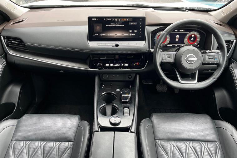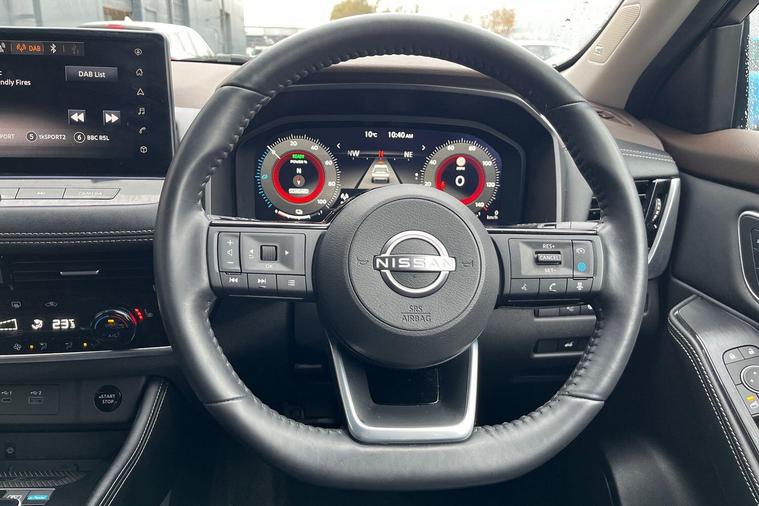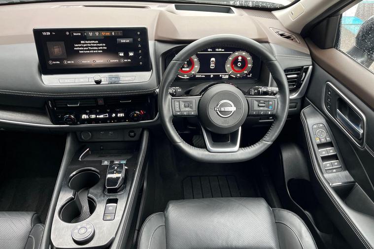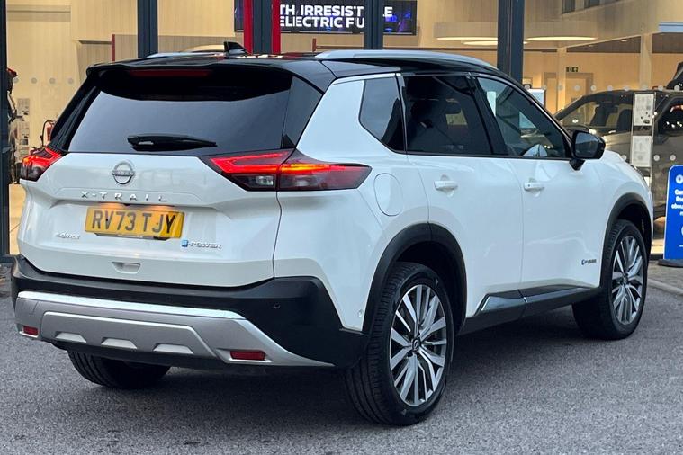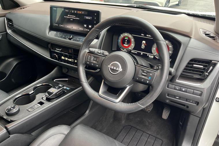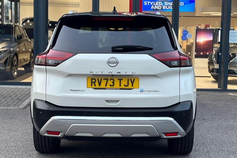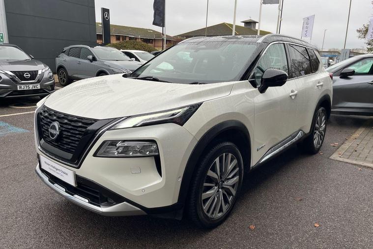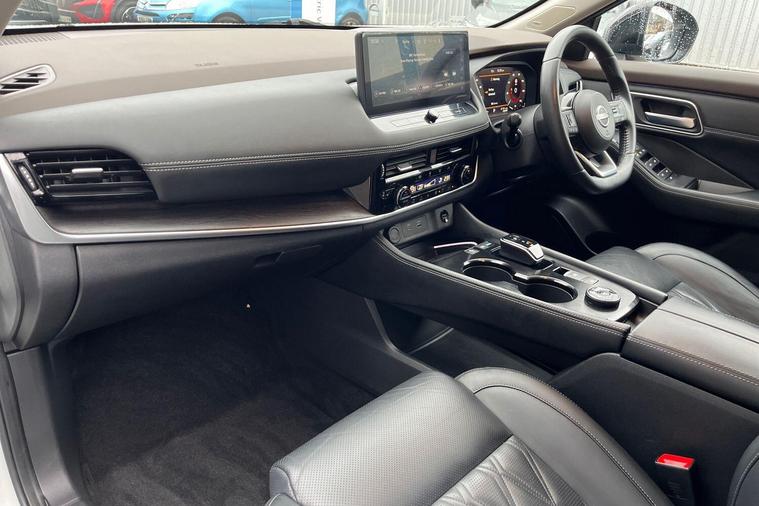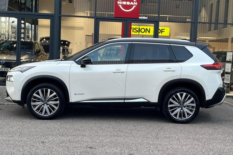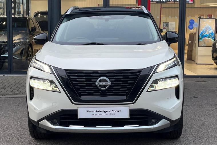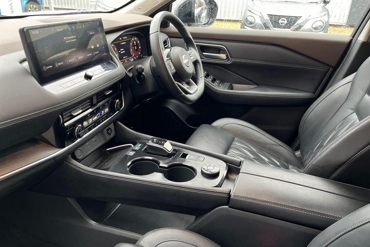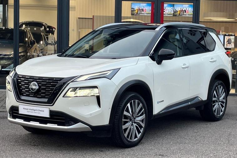 This 2023 Nissan X-Trail e-POWER Tekna+ is a Nissan manufacturer approved vehicle, offering peace of mind and assurance of quality. It features a sophisticated 1.5 litre petrol hybrid engine paired with a Four Wheel Drive drivetrain, meeting the Euro 6 emission standards. This Tekna+ variant comes equipped with a suite of advanced technology, including wireless Apple CarPlay for seamless smartphone integration and a wireless charging pad for your devices. Parking is made effortless with the Intelligent Around View Monitor, providing a 360 degree camera view, complemented by front and rear parking sensors. Furthermore, the Blind Spot Warning system enhances safety by alerting you to vehicles in your blind spots.The Nissan X-Trail e-POWER Tekna+ excels with its impressive acceleration, achieving 0-62mph in just 7.0 seconds, demonstrating its responsive performance. This capability, combined with its Four Wheel Drive system, indicates that this vehicle offers a more capable and engaging driving experience compared to many similar models. You will also appreciate the generous boot space, making it ideal for carrying luggage, shopping, or equipment. The inclusion of wireless connectivity and advanced parking assistance further elevates its practicality and convenience, setting it apart as a well equipped and versatile SUV..