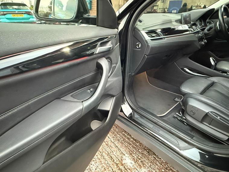 Just arrived|New photos soon! This 2021 BMW X2 2.0i Sport boasts a full BMW dealership service history, with its last service completed on 25th June 2025 at 76, 581 miles, including new front brake discs/pads fitted, ensuring excellent provenance. Finished in smart Sapphire Black Metallic & black alloy wheels. This Euro 6 compliant, four wheel drive model is powered by a 2.0 litre petrol engine and now with a new MOT to 26/11/2026. It has had only one owner from new and features a Sport trim with upgraded perforated Dakota leather in black with grey stitching, lumbar support for the driver and front passenger, and seat heating for both. Enjoy seamless connectivity on the Satnav media DAB radio system with Apple CarPlay and maintain a comfortable cabin temperature thanks to the automatic two zone climate control. Also features park distance control front & rear for ease of parking. It's a fabulous quiet & smooth car to drive with good performance. All handbooks. 2 x keys. We sell with 6 Months Warrantywise Platinum Warranty. 12 Months AA Breakdown Membership included. AA Driveaway 5 Day Insurance available - Only £44.99 NEED FINANCE? No Problem - SAF Registered. Simply click 'Apply for finance' on our website dealer's website We are a FCA registered dealership. Prime or subprime finance. Excellent finance rates starting from as low as 11.1% APR (Subject to status and terms and conditions) For any further information and details to view please contact David, who has over 50 years personal Motor trade experience! Delivery to your door is available, please ask for a quote. More images when valeted, no dings or scratches and faultless to drive as you would expect a BMW dealer maintained car.The BMW X2 20i Sport offers an engaging driving experience, highlighted by its impressive 0-62mph acceleration time of just 7.4 seconds. This performance, combined with its comprehensive service history and desirable features like heated seats and Apple CarPlay, positions this vehicle as a strong choice compared to other similar models available on the market..