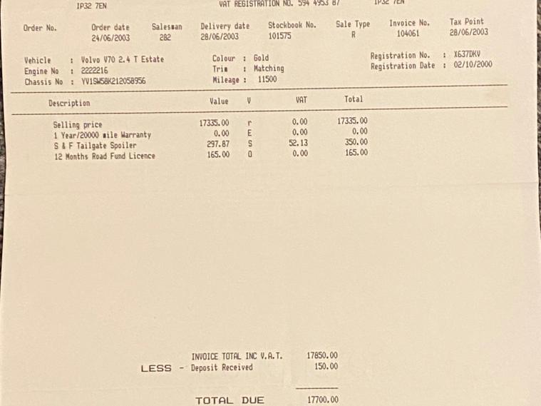 #FULL SERVICE HISTORY WITH ORIGINAL BILL OF SALE FROM 2003 VERY VERY RARE VEHICLE POSSIBLY THE BEST MAINTAINED EXAMPLE ON THE INTERNET FIND ANOTHER#LAST SERVICED @ 137, 000 MILES#23 SERVICES PERFORMED #CAMBELT AND WATER PUMP DONE TWICE#2 KEYS WITH FOBS#OCTOBER 26 MOT#FULL DOCUMENTED HISTORY WITH EVERY INVOICE DATING BACK FROM THE FIRST OWNER IN 2003.#FIND ANOTHER LIKE THISFor more information on this vehicle give our sales team a call 7 days a week we are here to help.This Volvo V70 T from 2000 offers a compelling blend of practicality and performance, making it a distinguished choice for those seeking a reliable estate car. Powered by a robust 2.4 litre petrol engine, this model delivers a smooth and capable driving experience. Its registration year of 2000 places it within a popular era for this well regarded model, known for its comfortable interior and spacious cabin, ideal for families or those needing ample cargo room.The V70 T variant is designed to provide a satisfying drive, with its 2.4 litre engine offering a good balance of power and efficiency for its class. This particular vehicle's specifications suggest it is well equipped to handle daily commutes and longer journeys alike. Its estate body style ensures versatility, while the T designation hints at a performance oriented trim level within the V70 range..