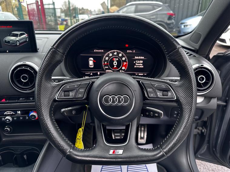 *Brand New Diamond Cut Alloy Wheels|Upgraded Front Splitter*Introducing this 2017 Audi S3 2.0 TFSI Sportback S Tronic quattro in stunning Nano Grey is the ultimate high-spec performance hatch — loaded with every optional extra. Powered by Audi’s exhilarating 2.0 TFSI engine with quattro grip and a slick S tronic gearbox, it delivers razor-sharp performance with everyday usability. Finished with a full suite of upgrades including Brand New Diamond Cut 18 inch alloys, an Upgraded front Splitter, privacy glass, panoramic roof, Virtual Cockpit, Bang & Olufsen sound, advanced navigation, Front and rear parking sensors, auto-dimming mirrors, and heated Nappa leather S sports seats with the flat-bottom steering wheel, Audi Sports Exhaust, Audi Drive Select-Efficiency-Comfort-Auto-Dynamic-Individual, Adaptive cruise control, Climate control, Electric and heated folding side mirrors, this S3 is the complete package. With its aggressive stance, premium tech and luxury touches throughout, this fully-loaded example stands head and shoulders above the rest — a true standout for any serious buyer. This vehicle comes with Full Service History, 2 keys and is HPI Clear!You can get a great deal on this vehicle by contacting the team at HNS motors. You can also take the opportunity to browse our complete range of used cars here on the website, all of which have been inspected before going on sale to ensure our vehicles are fully prepped and ready to go on the road.This vehicle comes with 6 months warranty, 12 Months MOT on purchase and 12 Months AA Breakdown Cover, part exchange is welcome, finance packages are also available. Deliveries are also available on trade prices.For further information you can contact us via email, messages or give us a call via the numbers or email below:01274914032hnsmotors7 dealer's website