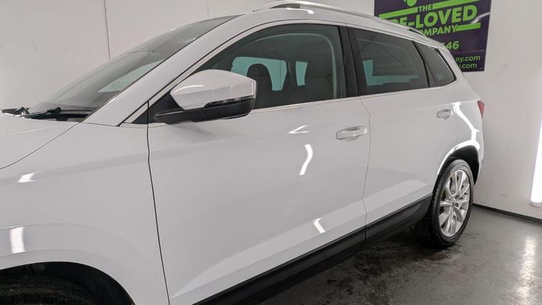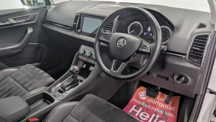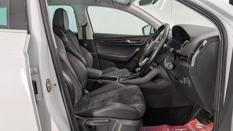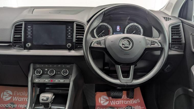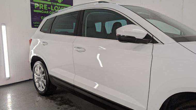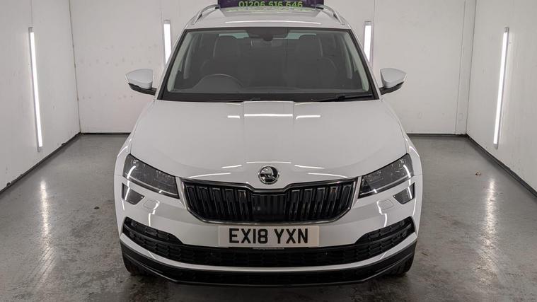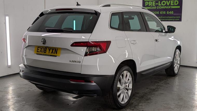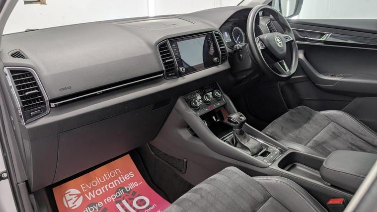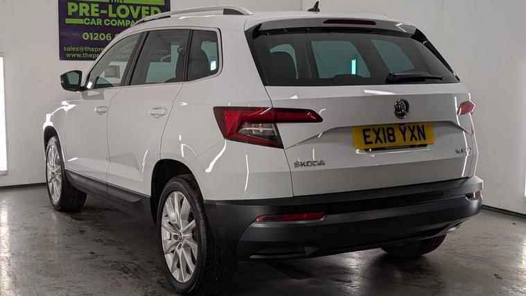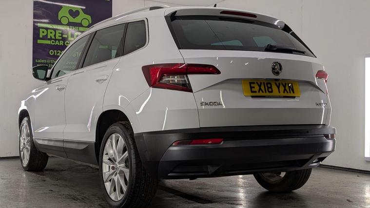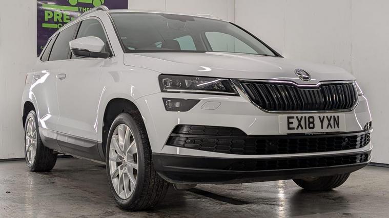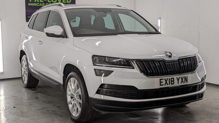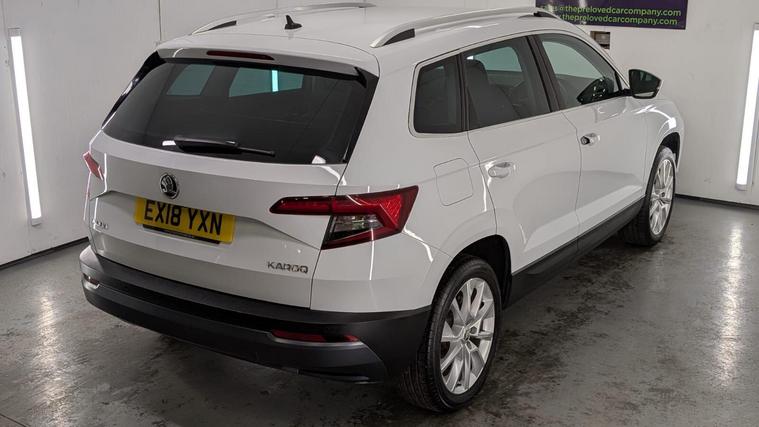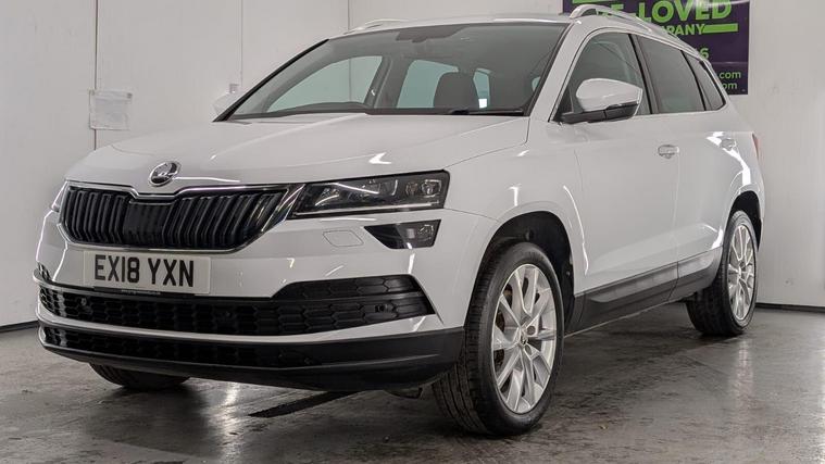 Boasting a full service history and a clear vehicle history check, this 2018 Skoda Karoq TSI SE L represents excellent provenance. This one owner vehicle, registered in 2018, features a 1.5 litre Euro 6 petrol engine and comes with a 3 month warranty for your peace of mind. Its MOT is valid until June 2026, and it was last serviced on 26 November 2025 at 82, 847 miles. Notable features include the Rain and Light Assistant with an auto dimming rear view mirror and automatic headlights, lumbar support for the front seats, seat belt signalisation, a clothes hook on the B pillar, silver roof rails, and a chrome package.This Skoda Karoq stands out with its impressive fuel economy, achieving 50 miles per gallon, which is better than many similar vehicles. It also benefits from a low CO2 emission rating and a low insurance group, making it an economical choice. The acceleration from 0 to 60 mph in just 8.3 seconds offers a responsive driving experience, and you will appreciate the large boot space, providing ample room for all your needs..