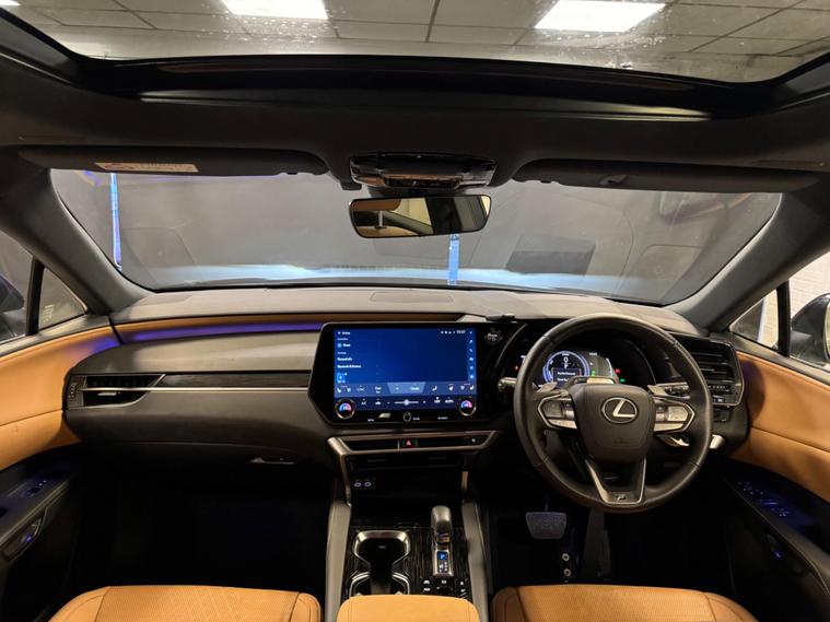 This 2024 Lexus RX 450h+ Prem Plus presents an exceptional ownership proposition with an incredibly low mileage of just 6800 miles, having been cherished by only one owner. This sophisticated Four Wheel Drive model boasts a 2.5 litre petrol plug in hybrid engine, adhering to Euro 6 emissions standards. Inside, you'll find a wealth of premium features designed for comfort and convenience, including a panoramic sunroof that opens to let in the fresh air, ultrasonic parking sensors front and rear to aid manoeuvring, and a head up display to keep your eyes on the road. The driver's seat benefits from a memory function, ensuring your preferred position is always readily available, while the Extended Lexus Safety System Plus3, featuring adaptive cruise control, provides enhanced peace of mind.The Lexus RX 450h+ Prem Plus offers a compelling blend of performance and practicality. Its impressive acceleration, capable of reaching 0 to 62 miles per hour in just 6.5 seconds, demonstrates its dynamic capabilities. This performance, combined with its advanced hybrid technology and Four Wheel Drive system, positions it favourably against other vehicles in its class. Furthermore, the generous boot space ensures that you have ample room for luggage, shopping, or any other essentials, making it a versatile choice for everyday life and longer journeys alike..