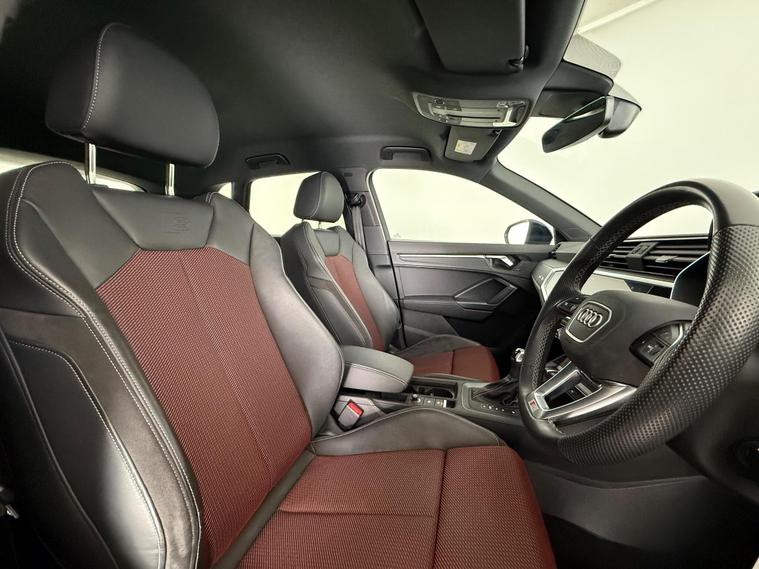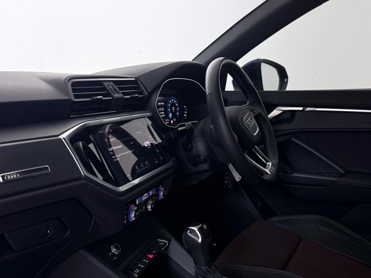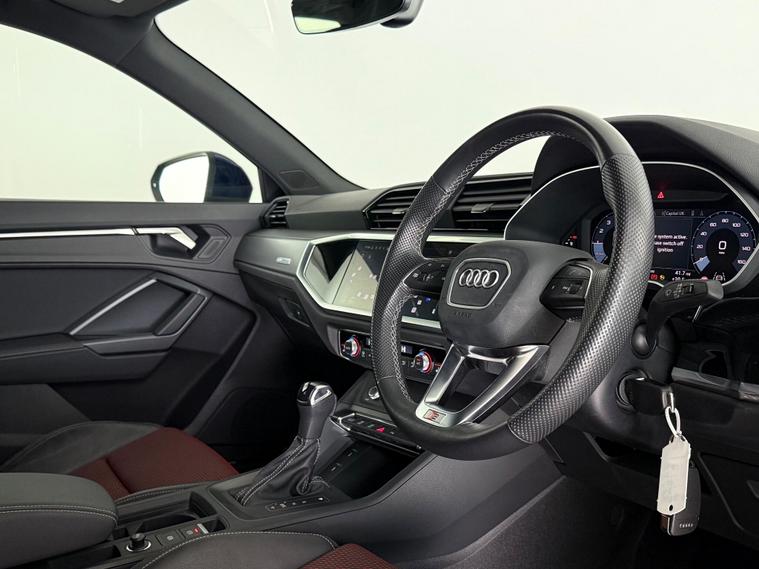 Our Audi Q3 is finished in Blue. With a great specification, our Q3 includes features such as 19 Inch Alloy Wheels, Electric and Heated Mirrors, Front and Rear Electric Windows, Privacy Glass, Roof Rails, Air Conditioning, Apple Carplay, Bluetooth, DAB Radio, Multi-Function Steering Wheel, Parking Sensors, Reverse Camera, Satellite Navigation, Speed Limiter, Upgraded Sound System - SONOS, USB, Black/Red Half Leather Trim, Central Armrest, Cup Holders, Electric Tailgate, Folding Rear Seats, Heated Seats, Rear Central Armrest, Start/Stop Button, ISOFIX, LED Daytime Running Lights, LED Headlights, LED Tailights, Remote Central Locking.All Car Planet stock is carefully picked, so you can buy from us with confidence. Each vehicle undergoes a thorough 150-point check at our preparation hub by our qualified specialists. Every car purchased comes with a free 12-month AA breakdown cover plan option to extend to 60 months warranty. You can reserve any of our cars online, with a refundable £99 reservation at dealer's website We also offer the option to purchase online and you can have your new car delivered to your door step from £199 in as little as 48 hours. Alternatively, come and visit our Barnet site where our friendly Car Gurus will assist you every step of the way. If you prefer a virtual appointment, we offer same-day video-viewings. We offer a range of flexible finance options from our panel of lenders. Part-exchanges are available upon request. Simply select, secure and drive..