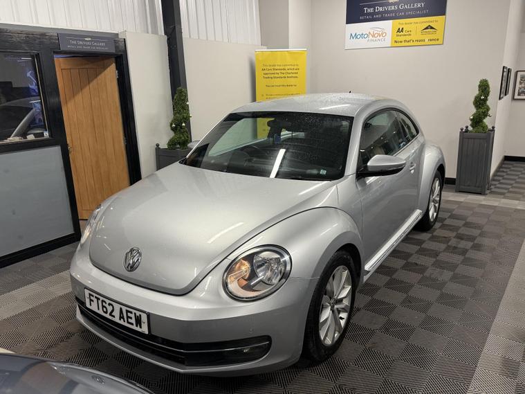 2012 Volkswagen Beetle 1.2 TSI Design DSG Euro 5, 3dr, 71, 400 miles. Finished in Reflex Silver Metallic with 17-inch alloy wheels. This example has had three former keepers and comes with the full V5, book pack, and one remote key. It has five recorded services, and we will complete a fresh service and MOT as part of our preparation process. Parking sensors are fitted front and rear.The 1.2 TSI engine in this Beetle is chain driven.A 3-month comprehensive warranty is included, with the option to extend this for up to two years. Part exchange is welcome at any value, and our Buying Department can provide prompt valuations. Nationwide delivery is available upon request. You can reserve this vehicle today with a £250 fully refundable deposit.We have over 150 vehicles in stock across our two sites. Established in 2021, we pride ourselves on our excellent reviews and customer care. All retail vehicles are fully health-checked and prepared to a high standard. As an AA Approved Dealer with Trading Standards endorsement, you can trust us to deliver quality and reliability. Every car comes with 12 months of free AA roadside breakdown and recovery, regardless of age, value, or mileage.Please refer to the photos and video for the full condition, as some age-related marks are present, as expected for a car of this year..